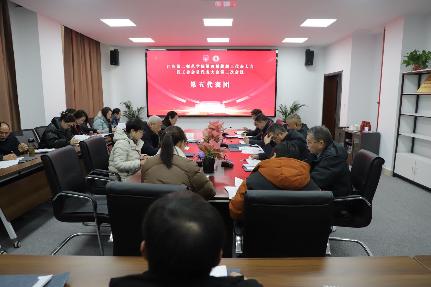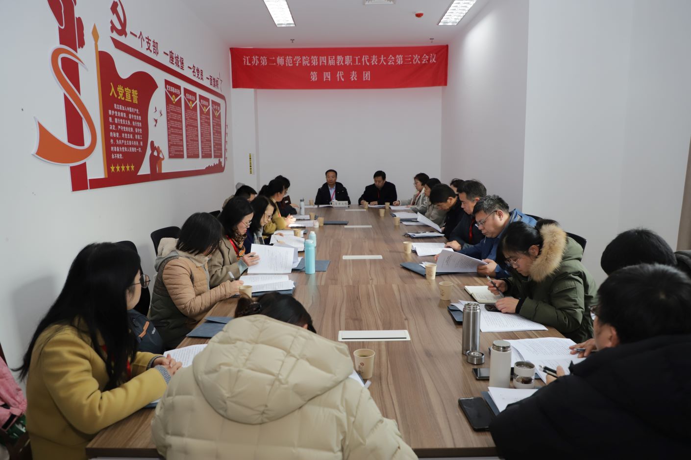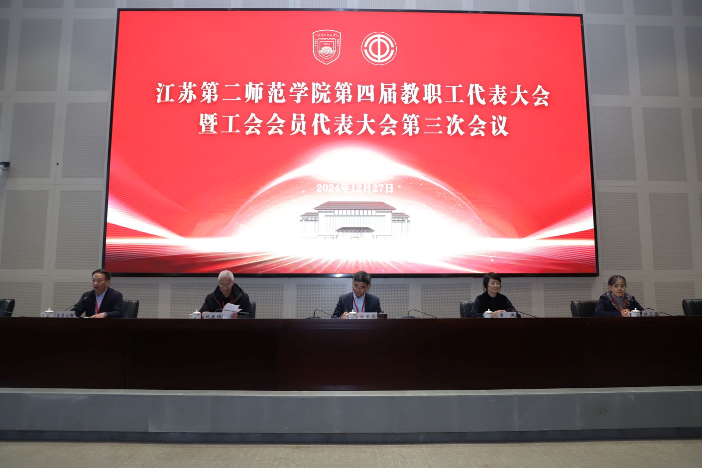 12月27日,学校第四届教代会暨工代会第三次会议在石湫校区敬业楼107会议室召开。校长徐国华,校领导崔燕、姚振标、皇甫立同、赵玉蓉出席会议,全体教代会暨工代会代表、特邀代表、列席代表参加会议。会议由党委常委、副校长皇甫立同主持。