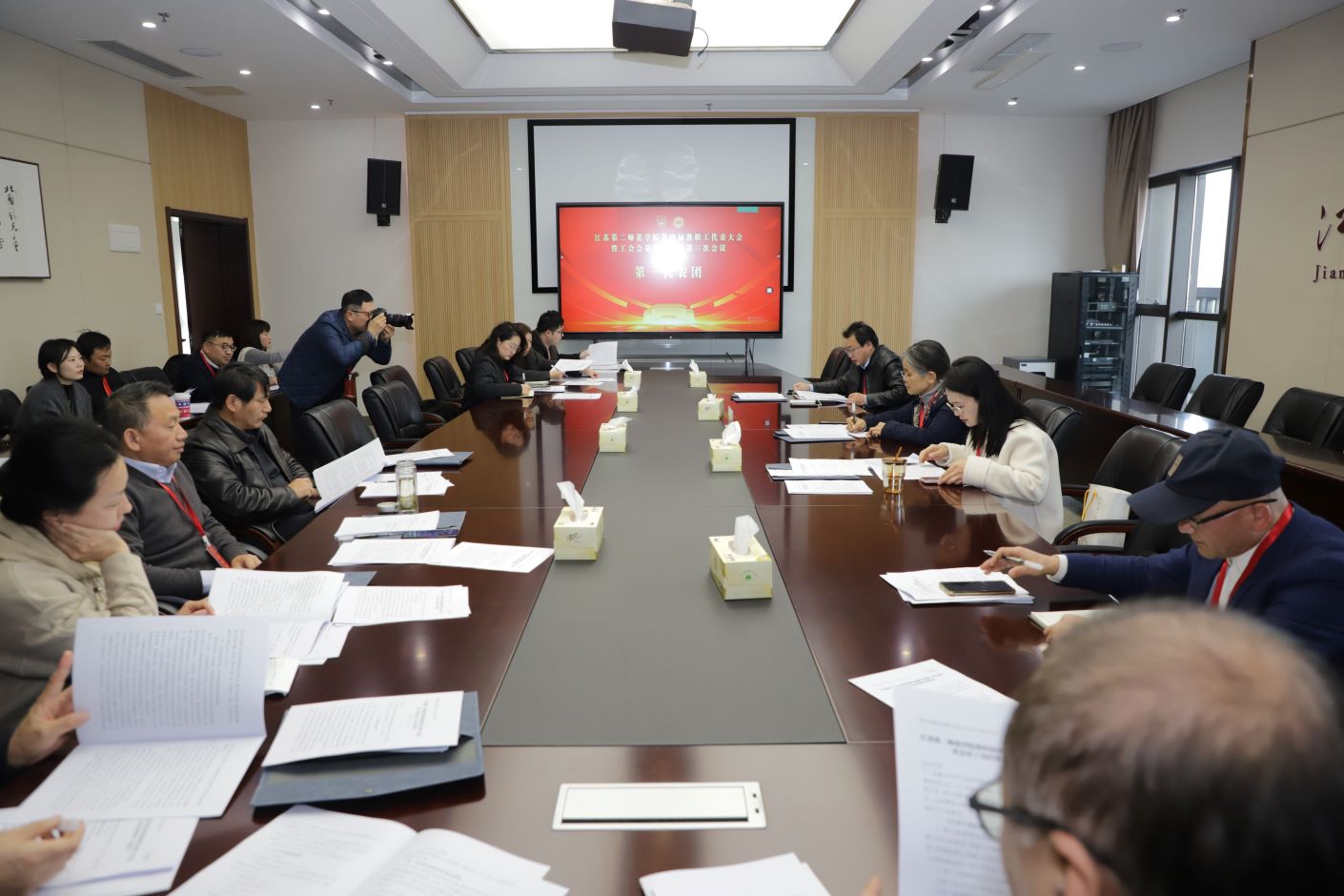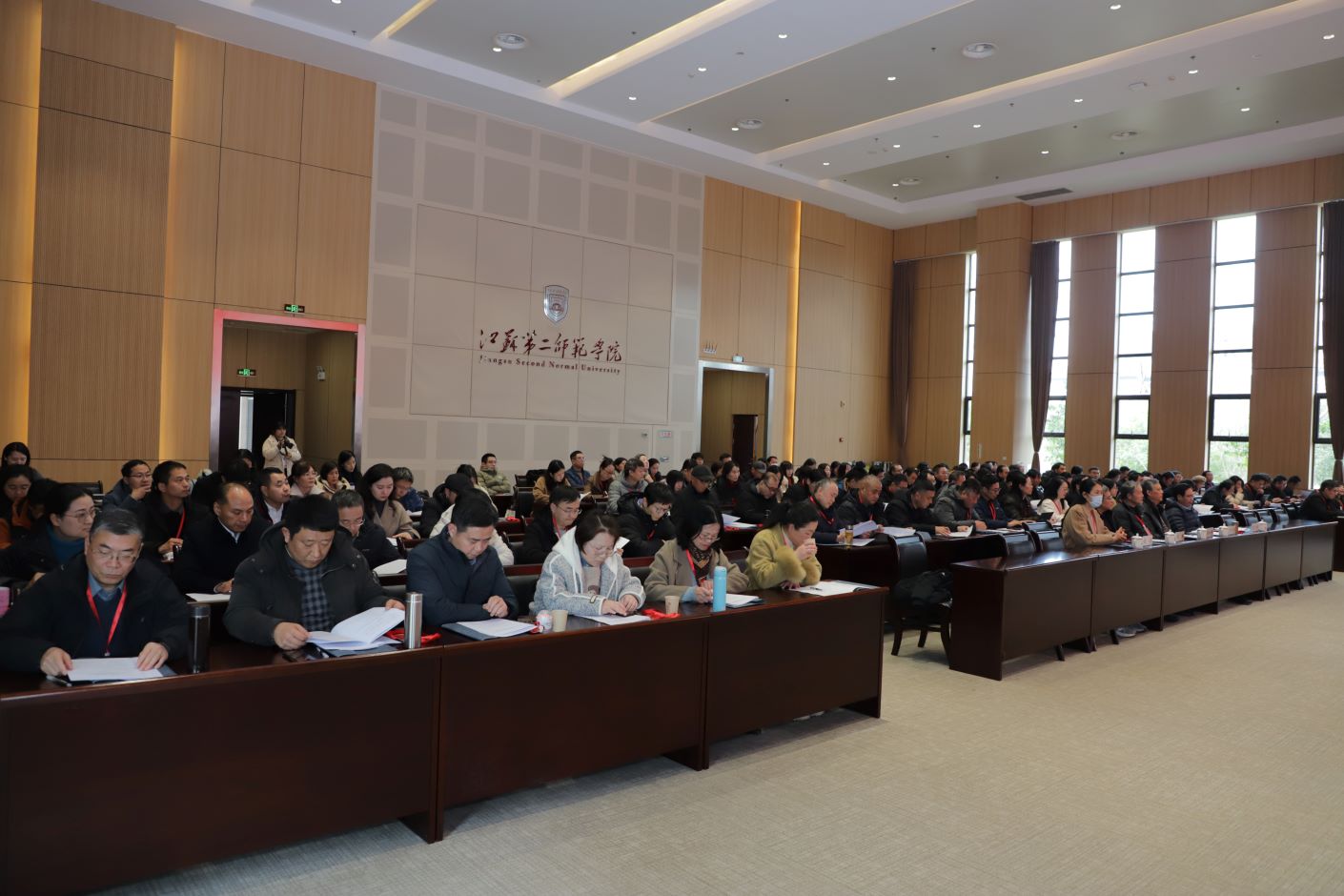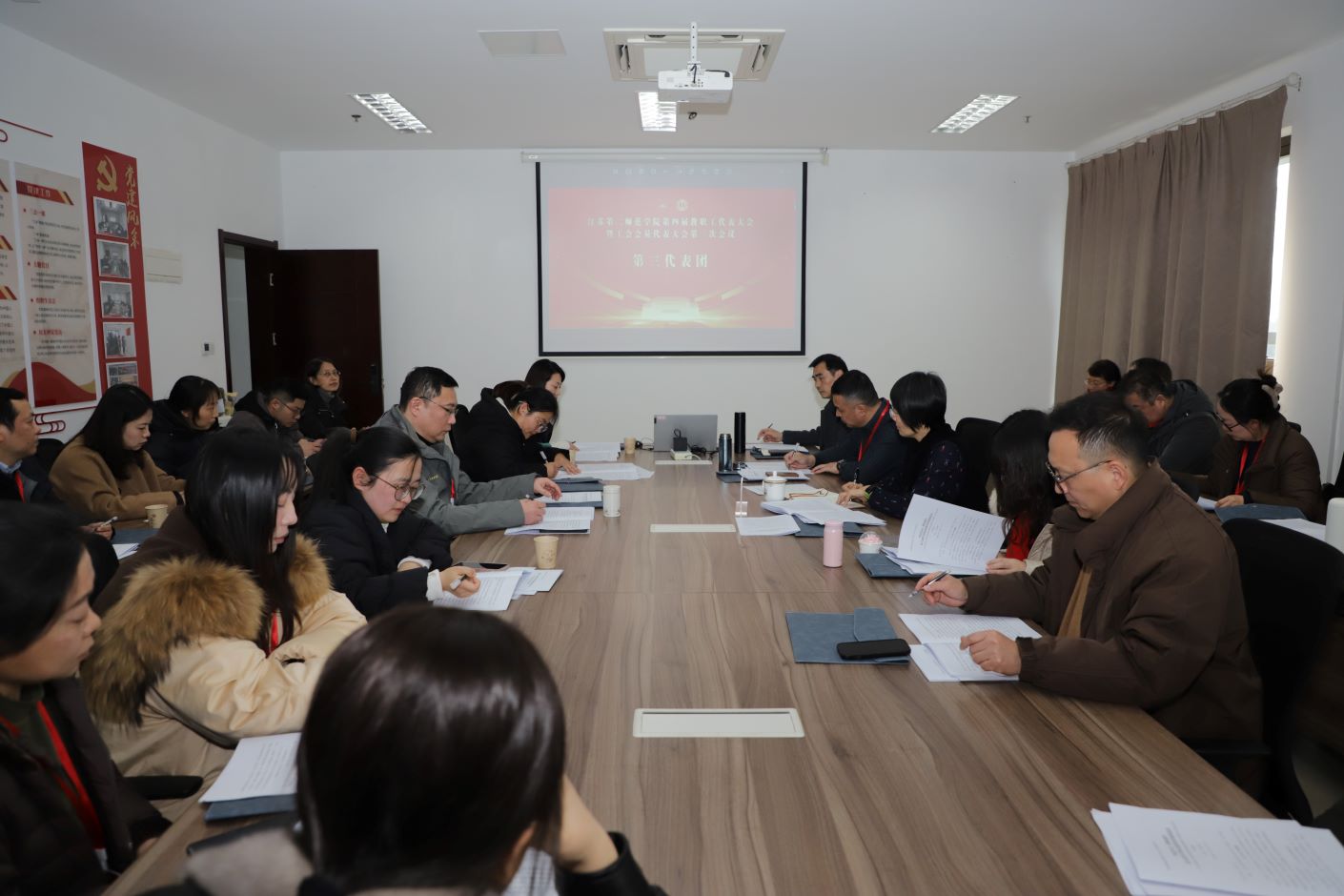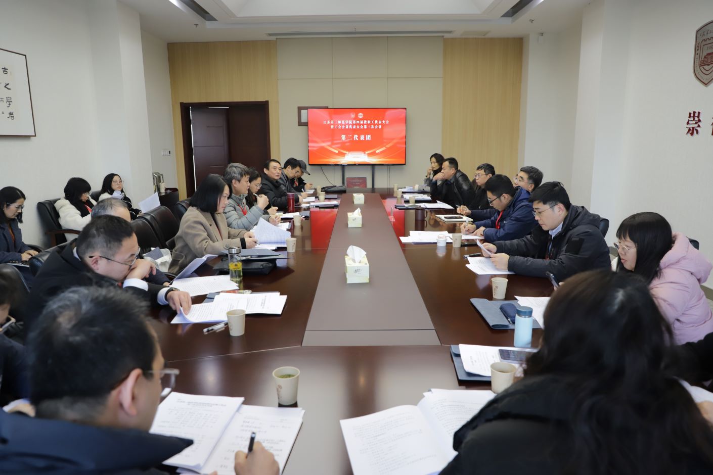 12月27日,学校第四届教代会暨工代会第三次会议在石湫校区敬业楼107会议室召开。校长徐国华,校领导崔燕、姚振标、皇甫立同、赵玉蓉出席会议,全体教代会暨工代会代表、特邀代表、列席代表参加会议。会议由党委常委、副校长皇甫立同主持。