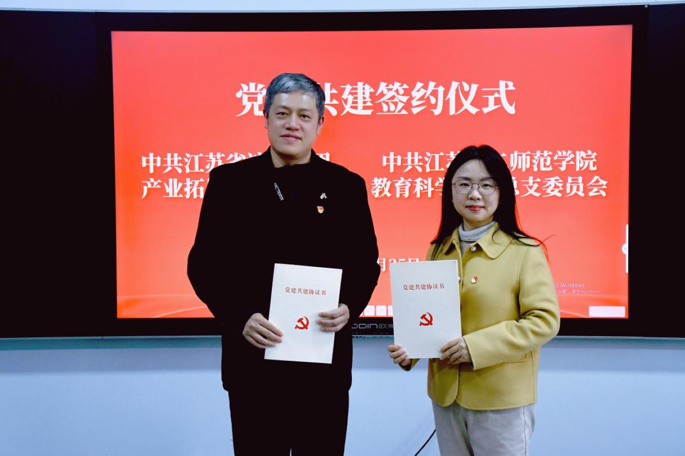 为创新党建工作形式,促进校企合作深度融合,12月25日,中共江苏省演艺集团产业拓展支部委员会与中共江苏第二师范学院教育科学学院总支委员会携手举办了一场别开生面的党建结对共建活动,为校园文化建设注入新活力,开启党建合作新篇章。江苏省演艺集团党委委员、演艺产业拓展部主任计华、副主任孙剑一行和教育科学学院党总支书记丁莹、副院长邬春芹、副院长王会霞等相关同志参加了活动。