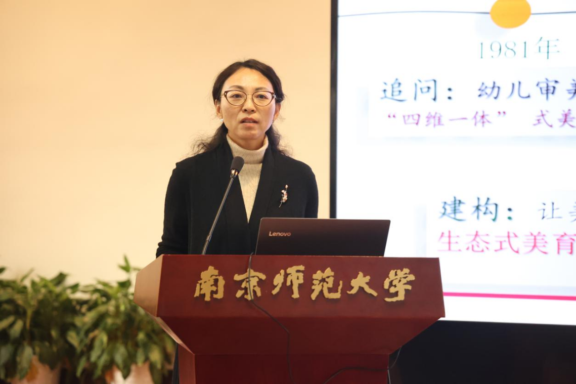 上午的专题报告由我校尹坚勤教授主持。南师大边霞教授围绕“走向生态的幼童美育”核心主题,结合实践案例,全面地阐释了幼童美育走向生态的理论与实操,着重强调了幼童美育中要重视整合、综合、整体、对话和平等五大基本特征。