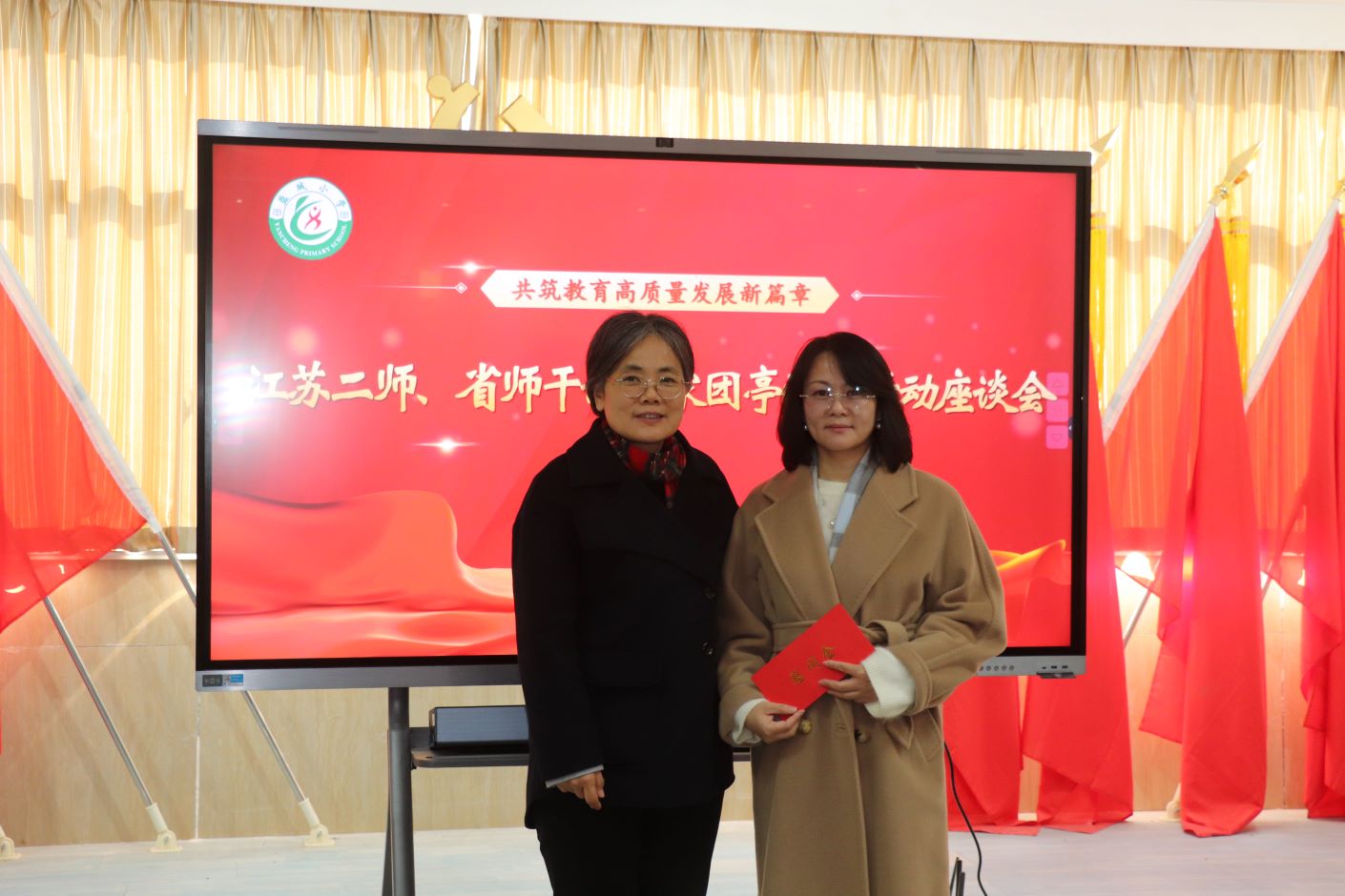 1月3日,校党委常委、副校长兼省师干训中心常务副主任皇甫立同,校党委常委、副校长兼党校校长赵玉蓉在省师干训中心、组织部有关负责同志的陪同下,赴盐城市亭湖区看望慰问了我校挂职干部、省师干训中心教师发展部主任、亭湖科技镇长团成员韩益凤,对亭湖区中小学进行调研并召开合作座谈会。亭湖区委常委、组织部部长、统战部部长张云云,亭湖区副区长、盐城市节能环保及新能源产业科技镇长团团长刘晓华,亭湖区教育局党委副书记、副局长李荣参加相关活动。