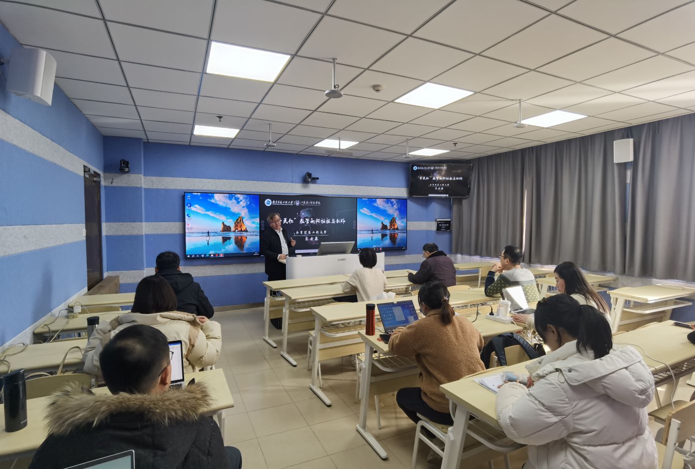1月9日下午,本科教育审核评估工作赋能教师发展工作坊第一期第三场活动在草场门校区现代教育技术楼503教室举行。南京信息工程大学裴世鑫教授作了“平民化”教学视频拍摄与制作的讲座,线上线下共160多名教师参加。