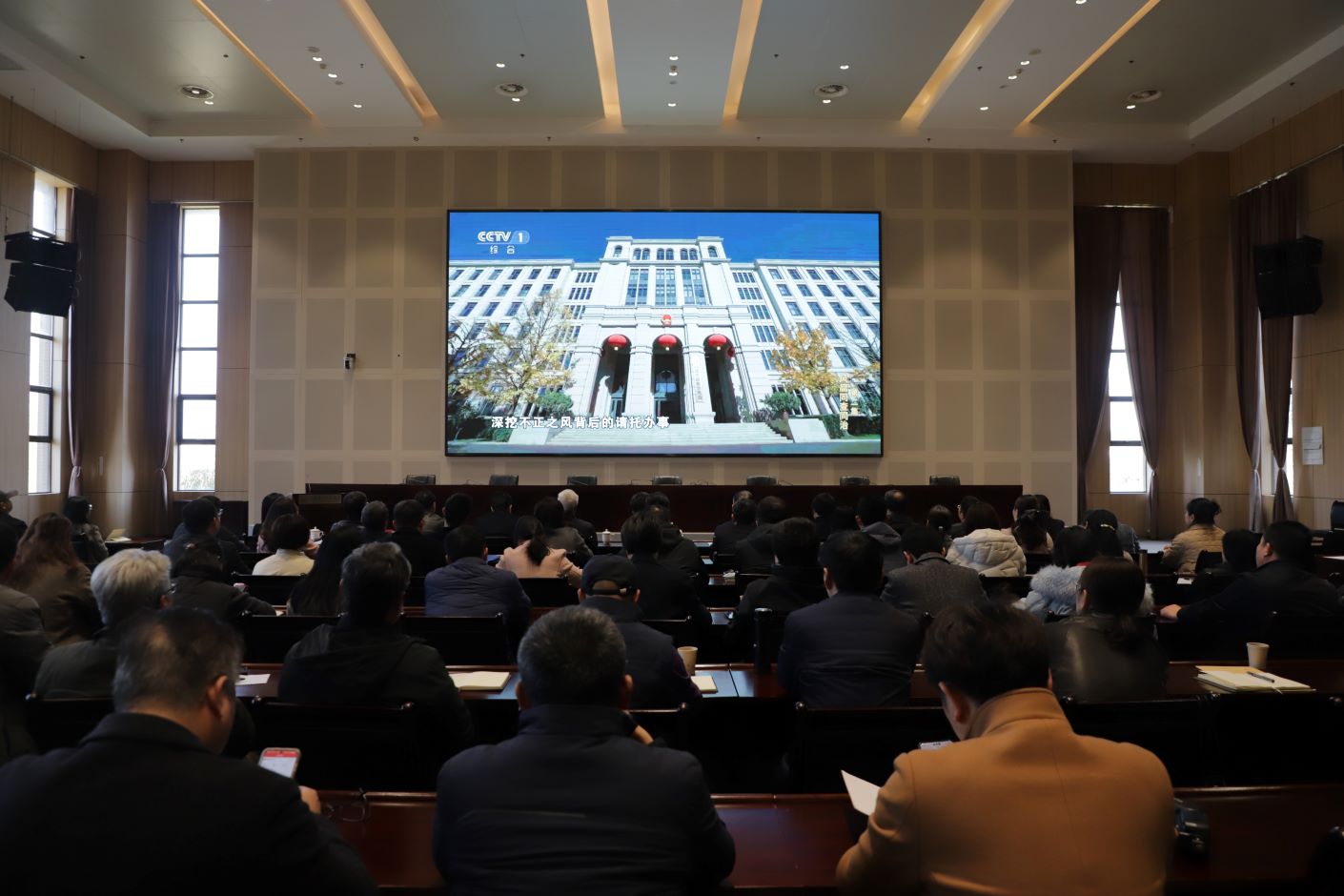 与会人员集中观看了警示教育片。