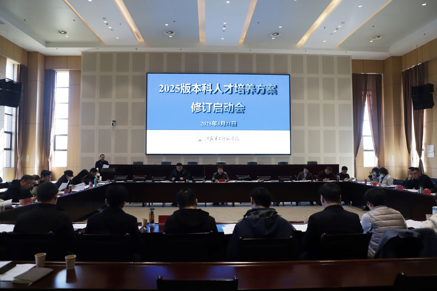 为进一步落实立德树人根本任务,深化本科教育教学改革,全面提高人才培养质量,3月21日上午,我校在石湫校区召开2025版本科人才培养方案修订启动会,副校长花书贵出席并主持会议。各学院(部)负责人、分管教学负责人、专业负责人、公共课开课单位和教务处负责人参加会议。