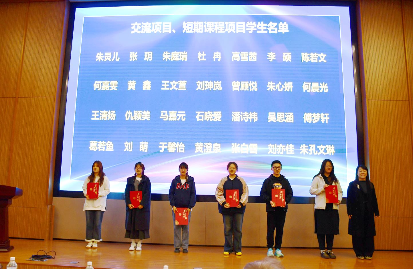 启动仪式上,学校对2024 年在出国交流项目中表现优异的学生进行了表彰。刘继红为获得省政府境外奖学金项目、学期交流项目及各类短期项目的学生代表颁发了证书。人文学部缪琳熹同学作为省政府境外奖学金项目的学生代表,率先上台分享宝贵经验;随后,外国语学院高雪茜同学,结合自身参加澳门城市大学暑期课程的经历,向大家讲述了境外学习的收获。他们的分享激励更多同学勇敢踏上国际教育的探索之旅。随后,美途教育的老师们围绕留学申请、语言备考等主题展开讲解,为有意向留学的同学提供了实用的指导。