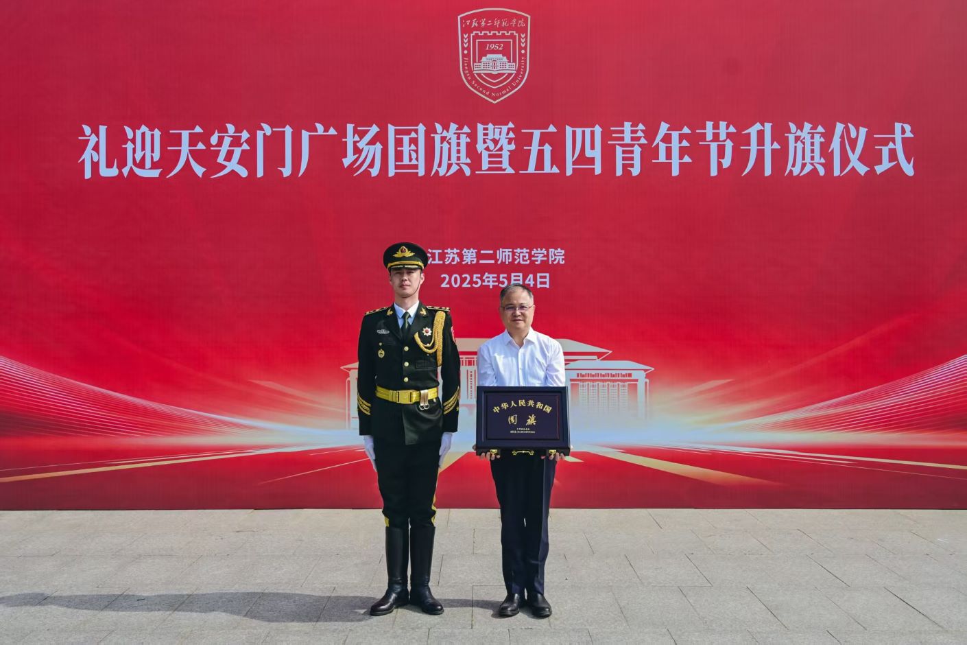 交汇点讯5月4日清晨,江苏第二师范学院石湫校区国旗广场上,青年学子正以挺拔的身姿迎接一面特殊的国旗——曾在天安门广场冉冉升起的国旗。