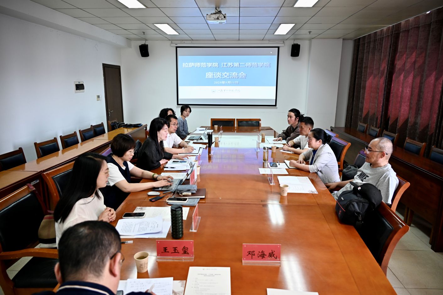 刘继红对拉萨师院对我校的信任表示了感谢,回顾了两校长期合作取得的成果,对未来两校的合作进行了展望,希望通过与拉萨师院合作为切入口,为西藏建设做出更多贡献。张越友对我校在拉萨师院升本过程中作出的贡献表示了感谢,就拉萨师院办学情况和调研目的做了介绍,并进一步阐明了调研主题。我校相关部门负责人分别介绍了我校在师资队伍建设、人才培养模式改革、学科建设、学生工作等方面取得的成果和积累的经验。双方围绕调研主题开展了热烈且富有成效的讨论,在扩大合作范围、深化合作内容、加大合作力度等方面达成了初步共识,为双方进一步合作奠定了良好的基础。