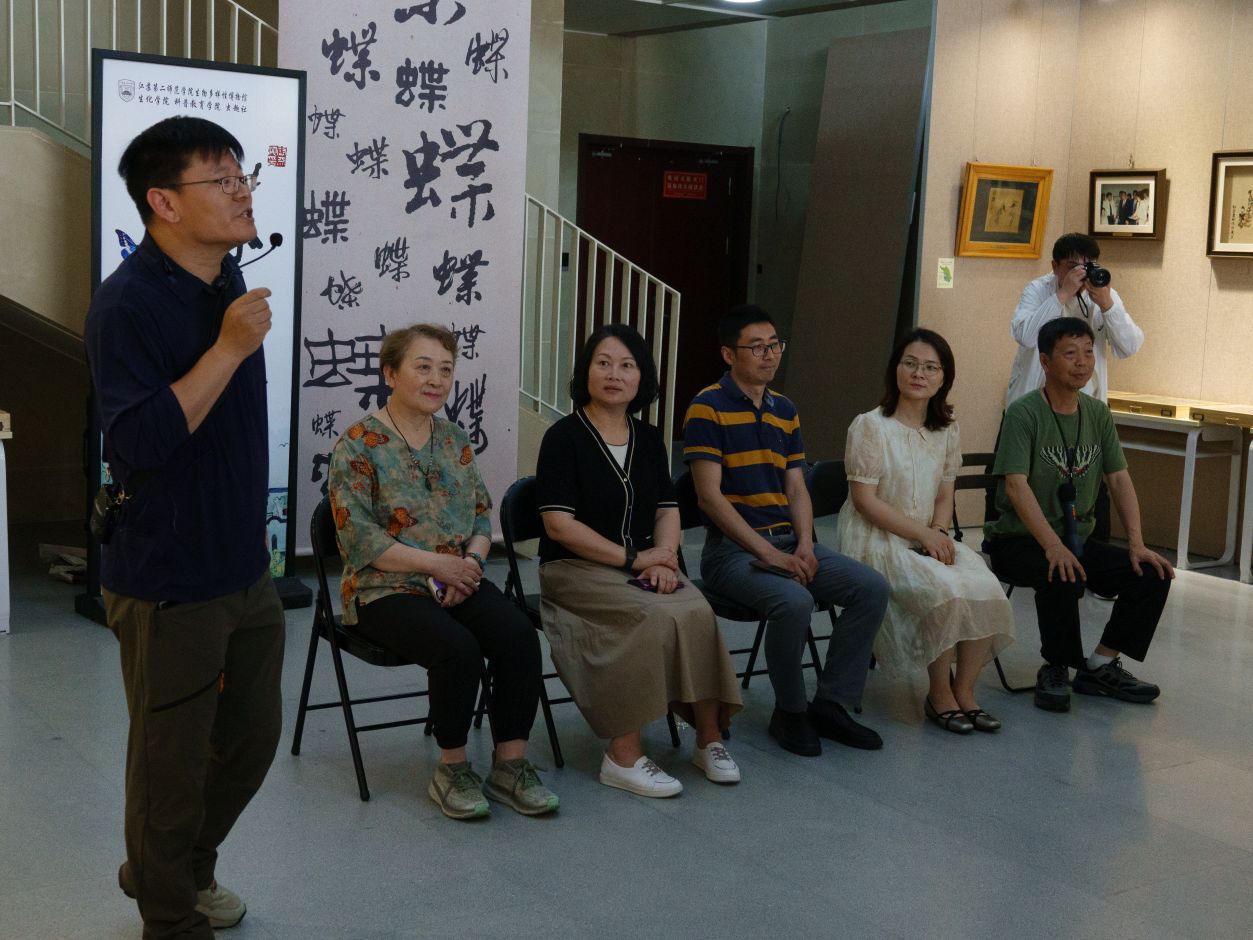 在这样的背景下,我校生物多样性博物馆、科普教育学院、虫趣社社团在生命科学与化学化工学院的指导下,联合南京中华虎凤蝶自然博物馆,在我校图书馆西展厅举办“蝶趣之美:是光的爱恋”暨蝴蝶与蝶翅贴画珍品展。展览当日,校党委常委、副校长皇甫立同、梅景辉也前来展厅参观。他们向为本次展览提供帮助与支持的南京中华虎凤蝶自然博物馆馆长张松奎、赵爱玲伉俪表达了诚挚感谢,亲切慰问了办展师生,并对此次展览给予充分肯定与高度评价。同时,期望生物多样性博物馆能更好地服务广大师生及周边公众,积极宣传生物多样性科普知识,进一步提升我校服务社会的影响力。为助力学校校地合作、深化教育集团建设,本次活动还特别邀请了江苏第二师范学院附属幼儿园代表参与现场交流。图书馆馆长施雁冰、生化学院院长丁正峰等嘉宾也出席开幕式,共同参与交流研讨。开幕式由生物多样性博物馆馆长宋志顺主持。