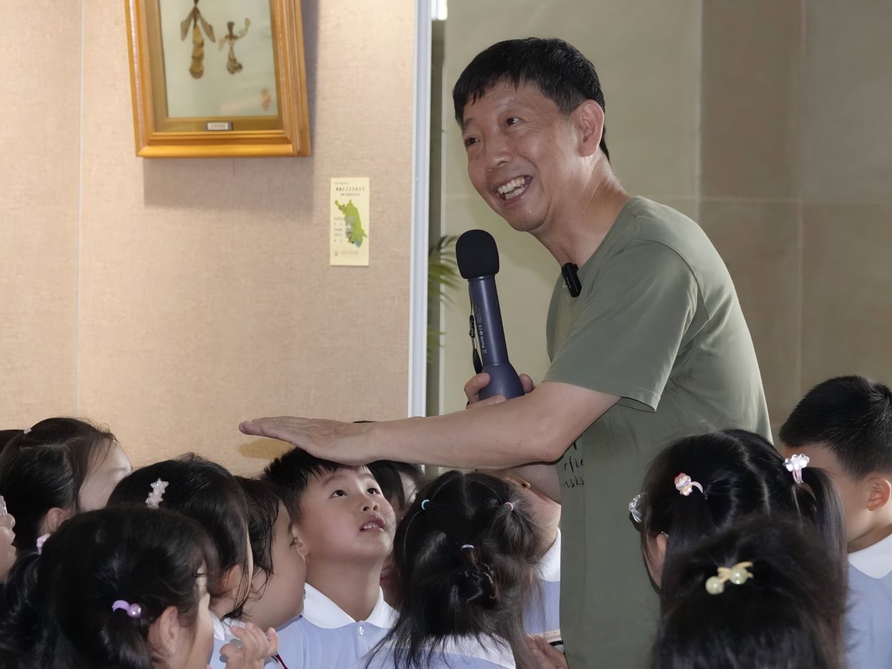 在展览现场,张松奎老师向江苏第二师范学院附属幼儿园及图书馆捐赠其四十年前手绘的《世界珍稀蝴蝶图谱》(《百蝶图》)复制品,并现场首展长达六米的原稿。这位生态学专家通过趣味互动方式,向附属幼儿园的孩子们讲述生物多样性保护的生动故事。虫趣社志愿者同步发放了由生命科学博物馆编印的《虫趣金陵—南京常见昆虫图谱》科普手册。