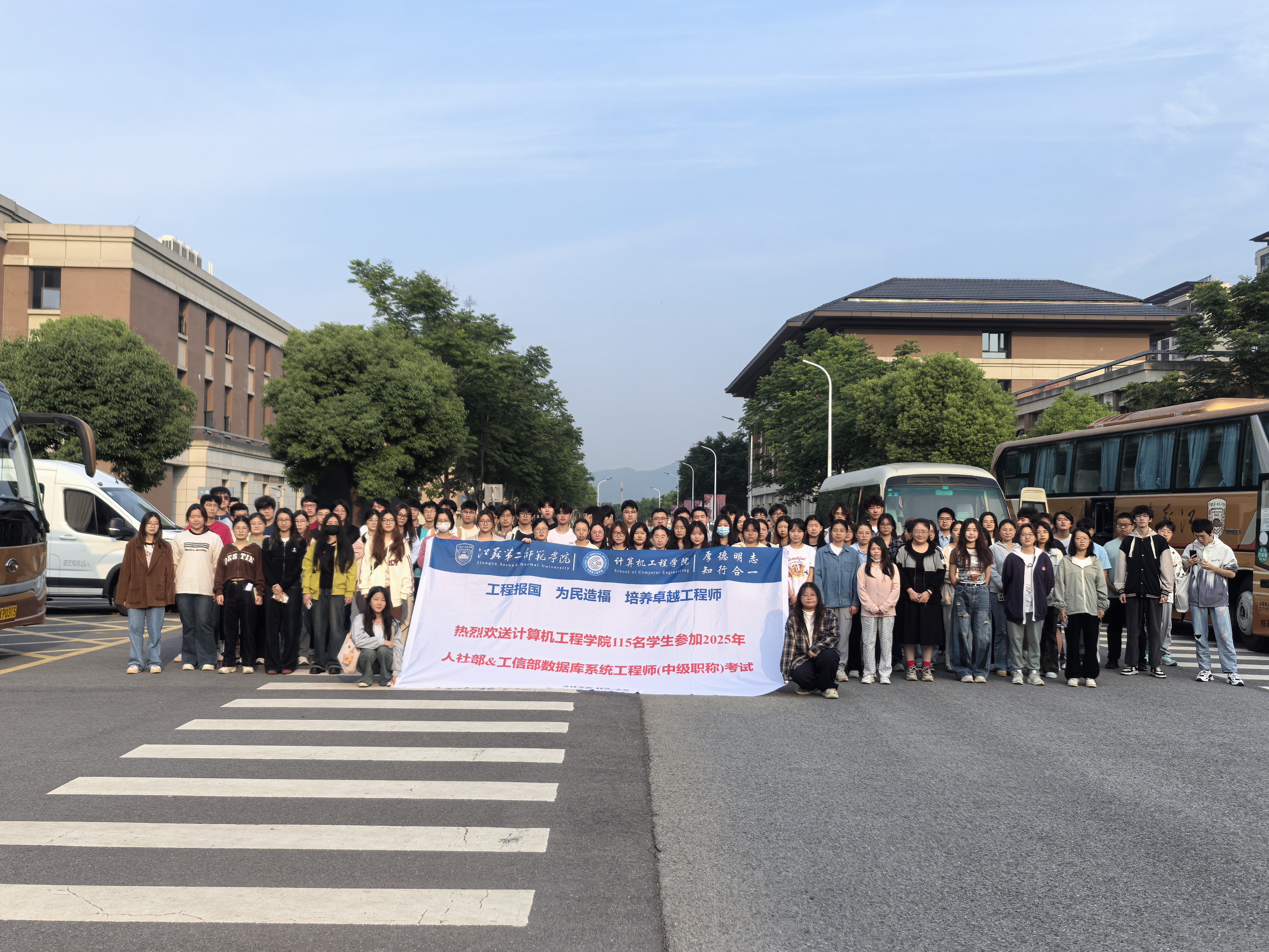 5月25日6:50,计算机工程学院在我校石湫校区欢送115名学生去参加2025年全国数据库系统工程师(中级职称)考试,考试时间为8:30-12:30。