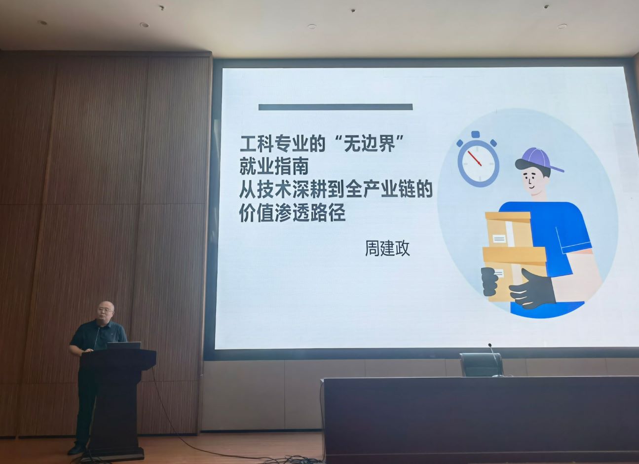 为深化理工科专业学生职业认知、拓宽就业视野,助力学生把握产业变革下的就业机遇,5月23日下午14:00,招生就业处在石湫校区举办就业大讲堂活动——理工科专场讲座。活动由求真书院承办,招生就业处处长司南主持,邀请南京市就业指导专家、资深职业规划师周建政作题为《工科专业的“无边界”就业指南——从技术深耕到全产业链的价值渗透路径》的主题讲座,全校共有200余名学生聆听了本次讲座。
