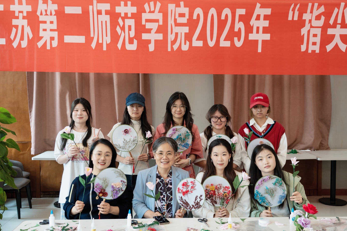 活动中,通过干花团扇、纸藤花、手工青团等制作和互动交流环节让同学们放松身心,沉浸式体验传统节日的魅力。在大学生心理健康协会和纸藤花社团的指导下,同学们选择自己心仪的项目,分组投入手工制作环节。在欢声笑语的氛围中,每个人都完成了独一无二的创作并手持作品合影留念,传递节日温情。