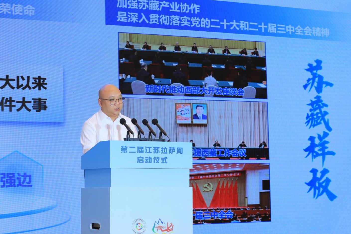 江苏省人民政府副省长陈忠伟在致辞中指出,对口支援拉萨市是党中央交给江苏的光荣任务。长期以来,江苏始终坚持真情援藏、科学援藏、持续援藏,办成了一批好事实事。举办江苏拉萨周活动是两地深化交流合作的又一重要举措,本届活动以文化为纽带、以经贸为重点,为两地人员交往、感情交融、合作交流搭建了有效路径。江苏将坚决贯彻落实习近平总书记重要指示和党中央决策部署,持续提升交往交流交融热度,着力打造多层面、多渠道、常态化的合作路径,让各族同胞共同感受祖国大家庭的温暖,让两地企业共享经济发展的机遇,不断开创新时代援藏工作新局面。