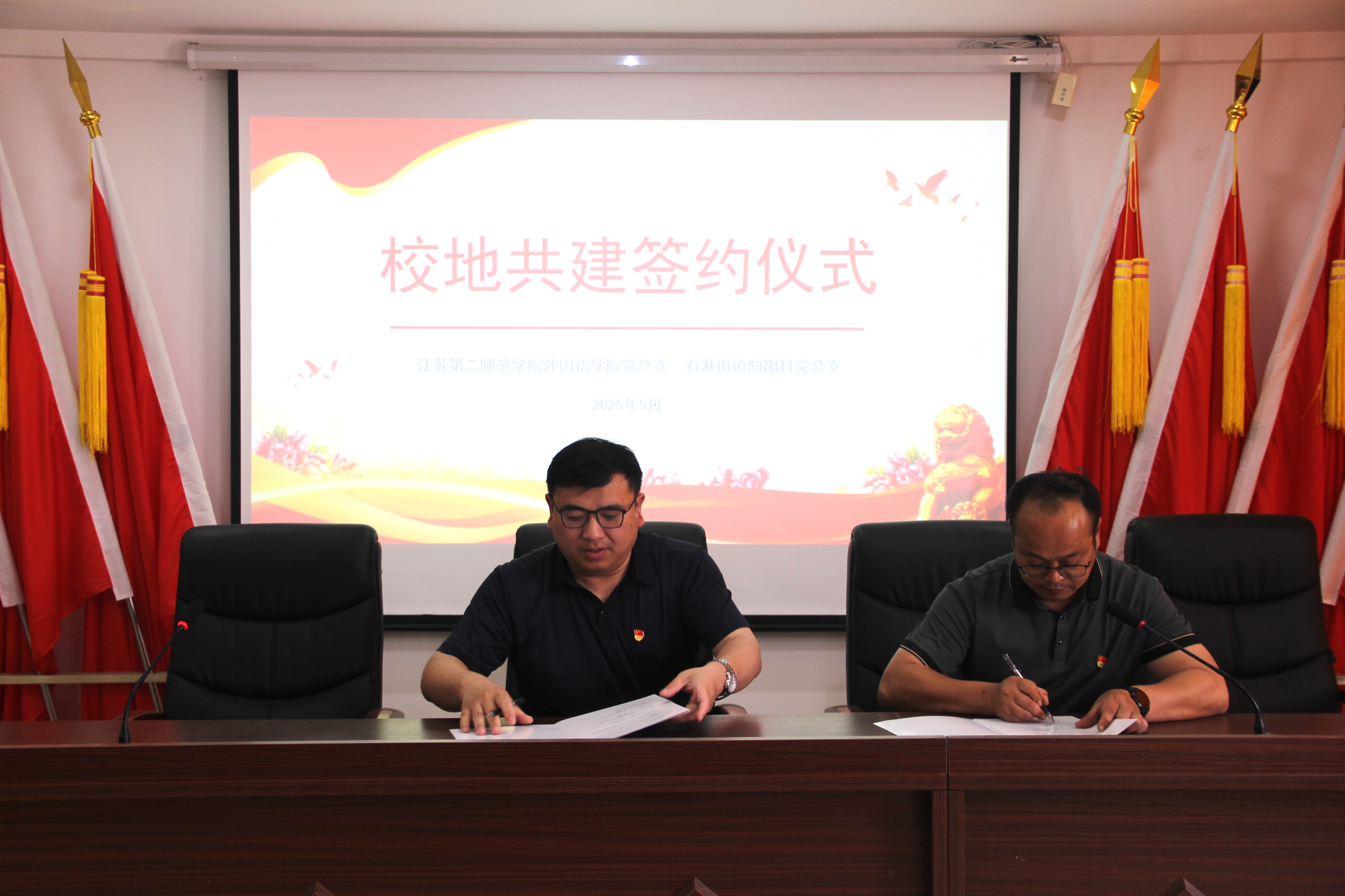 近年来,外国语学院组织学生在石湫街道向阳村开展文化帮扶、社会实践、志愿服务等各类实践活动,成果显著。签约仪式上,余鑫与石湫街道向阳村党总支书记黄平平签署校地合作共建协议。双方表示要以“党建结对”为纽带,以“社会实践”为桥梁,打造“资源互通、平台共建、人才共育”的共同体,为学生拓展实践平台、提升综合素养搭建舞台,也为乡村引入智力资源、激发发展活力注入动力,真正实现“党建赋能、校地共建”。