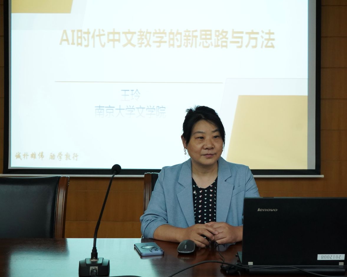 江苏省师干训中心教师发展部主任韩益凤介绍了江苏省教师培训的实践成果,包括“国培计划”实施、名师名校长培养等经验。随后,南京大学文学院王玲教授围绕“AI时代中文教学的新思路与方法”开展专题讲座,结合智能技术应用案例,探讨华文教学模式的创新路径,引发马来西亚教师的浓厚兴趣与热烈讨论。