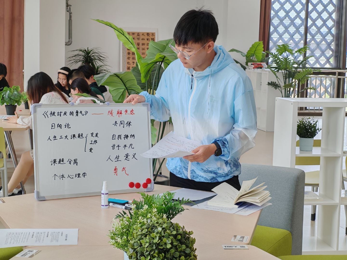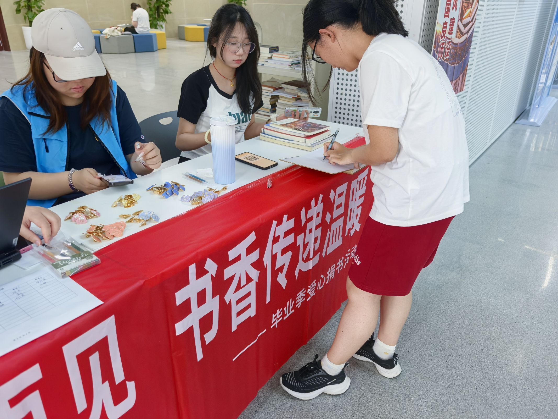 “书语流馨”板块融合人文关怀与科技元素,带来全新的阅读体验。“暖心书屋”系列活动聚焦心理成长,为读者营造安全开放的阅读疗愈空间,活动引入的AI对话平台成为读者日常倾诉与自我调适新渠道。闭馆音乐征集活动鼓励进馆读者推荐舒缓旋律,用音乐点缀夜晚的图书馆时光。毕业季爱心捐书倡议温暖人心,毕业生将珍藏书籍捐赠给学弟学妹,传递了知识与祝福。