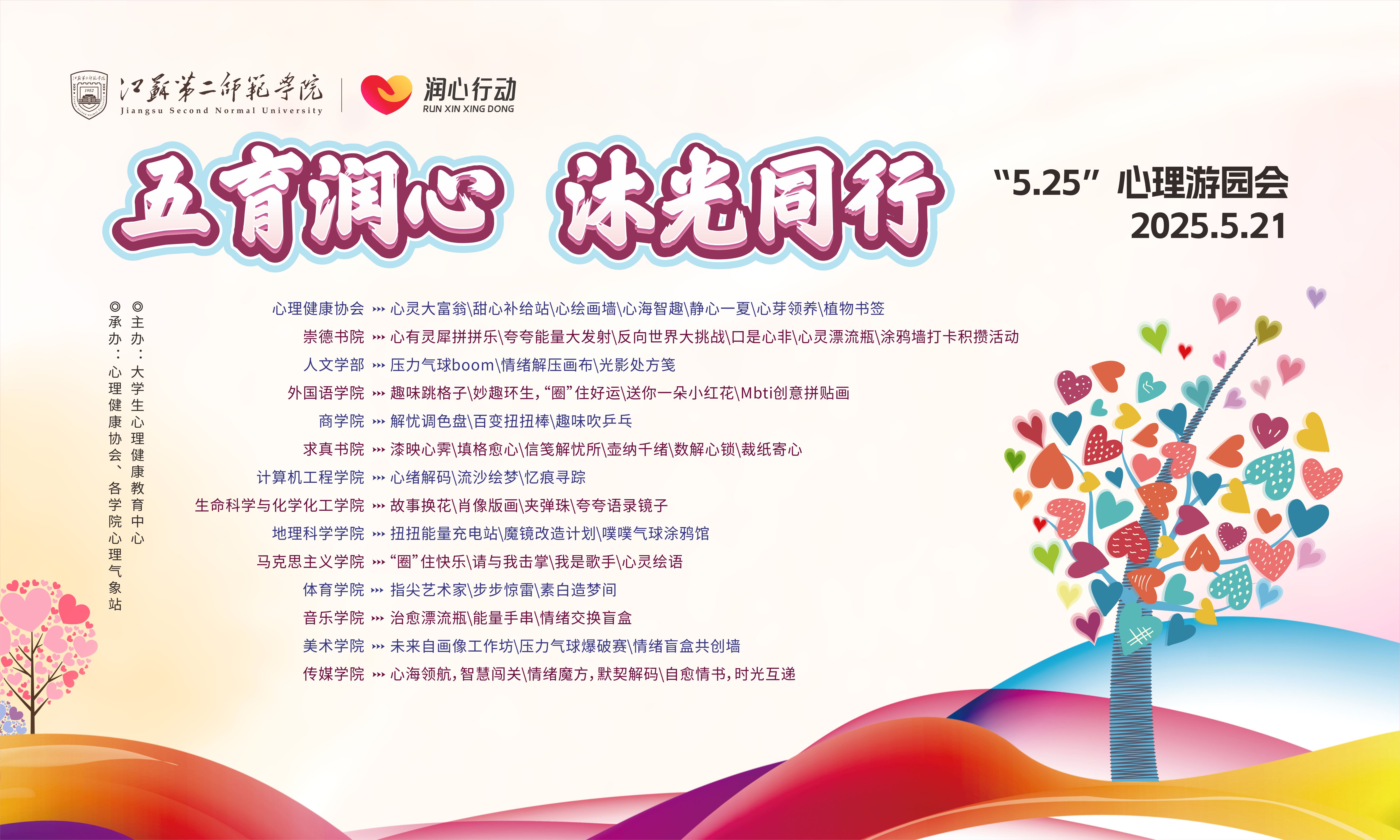 3月至6月,我校大学生心理健康教育中心紧扣“五育润心 沐光同行”主题,以“线上+线下”联动模式,多维度开展心理主题系列活动,深受广大学生欢迎。