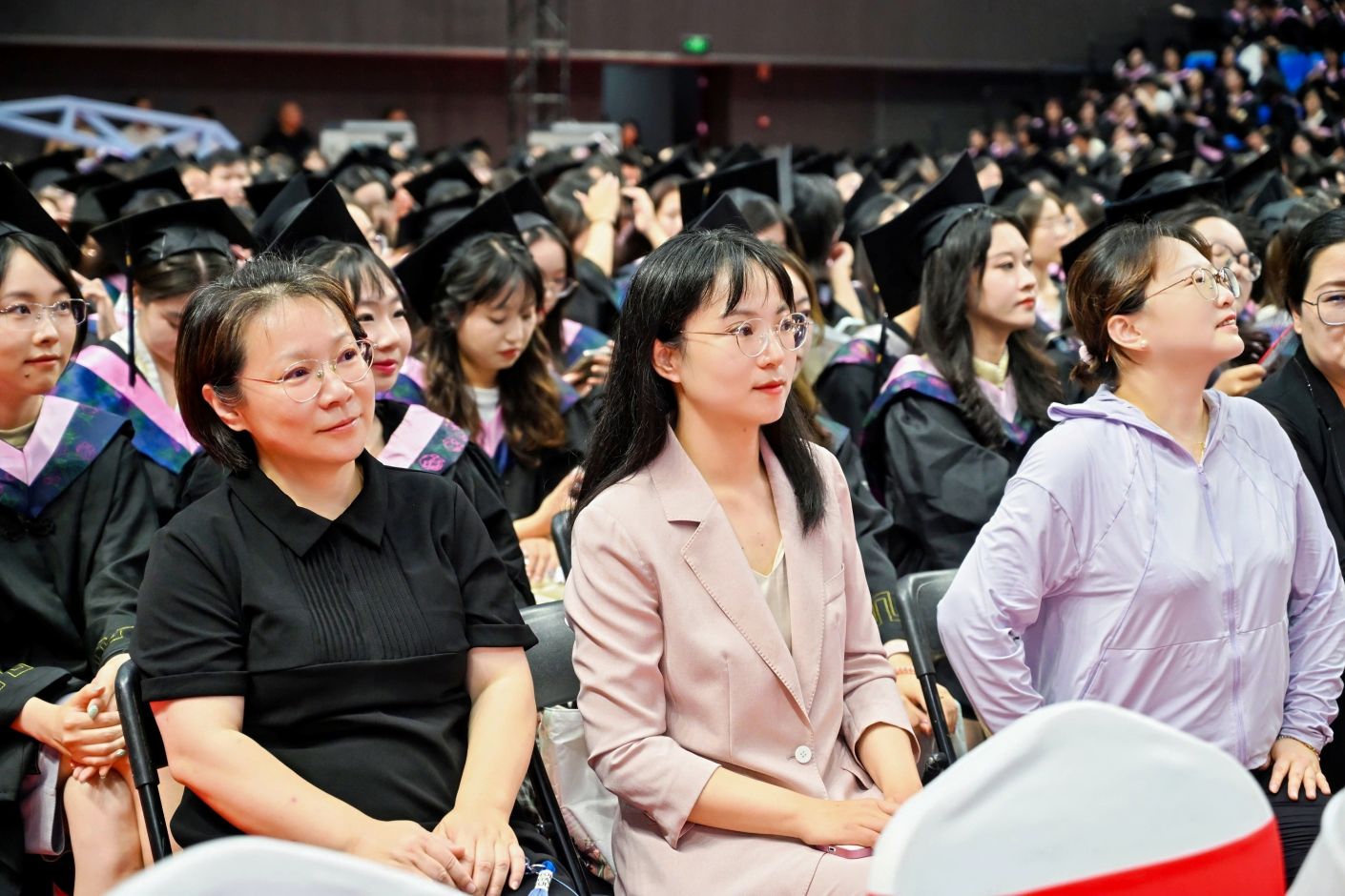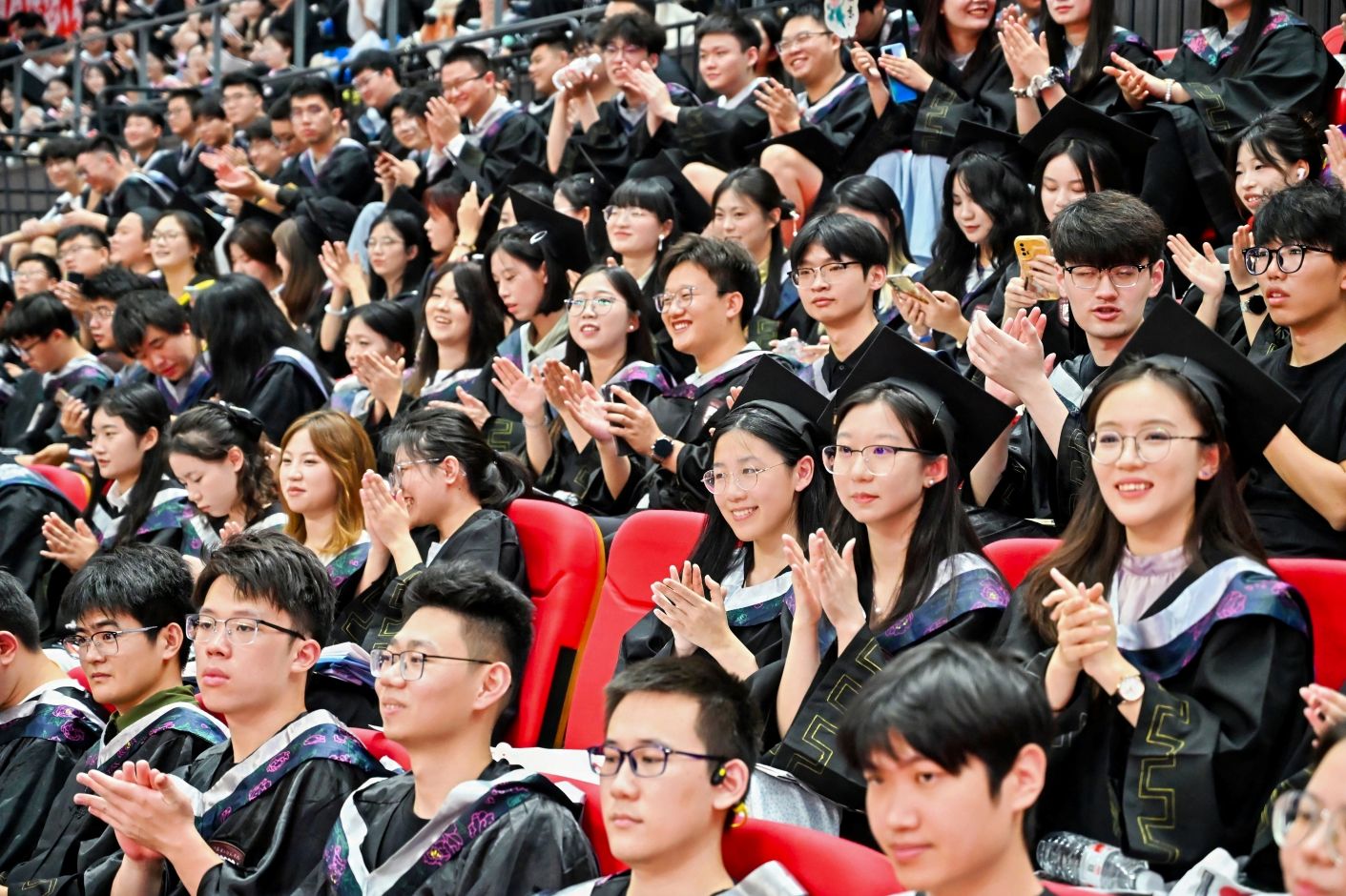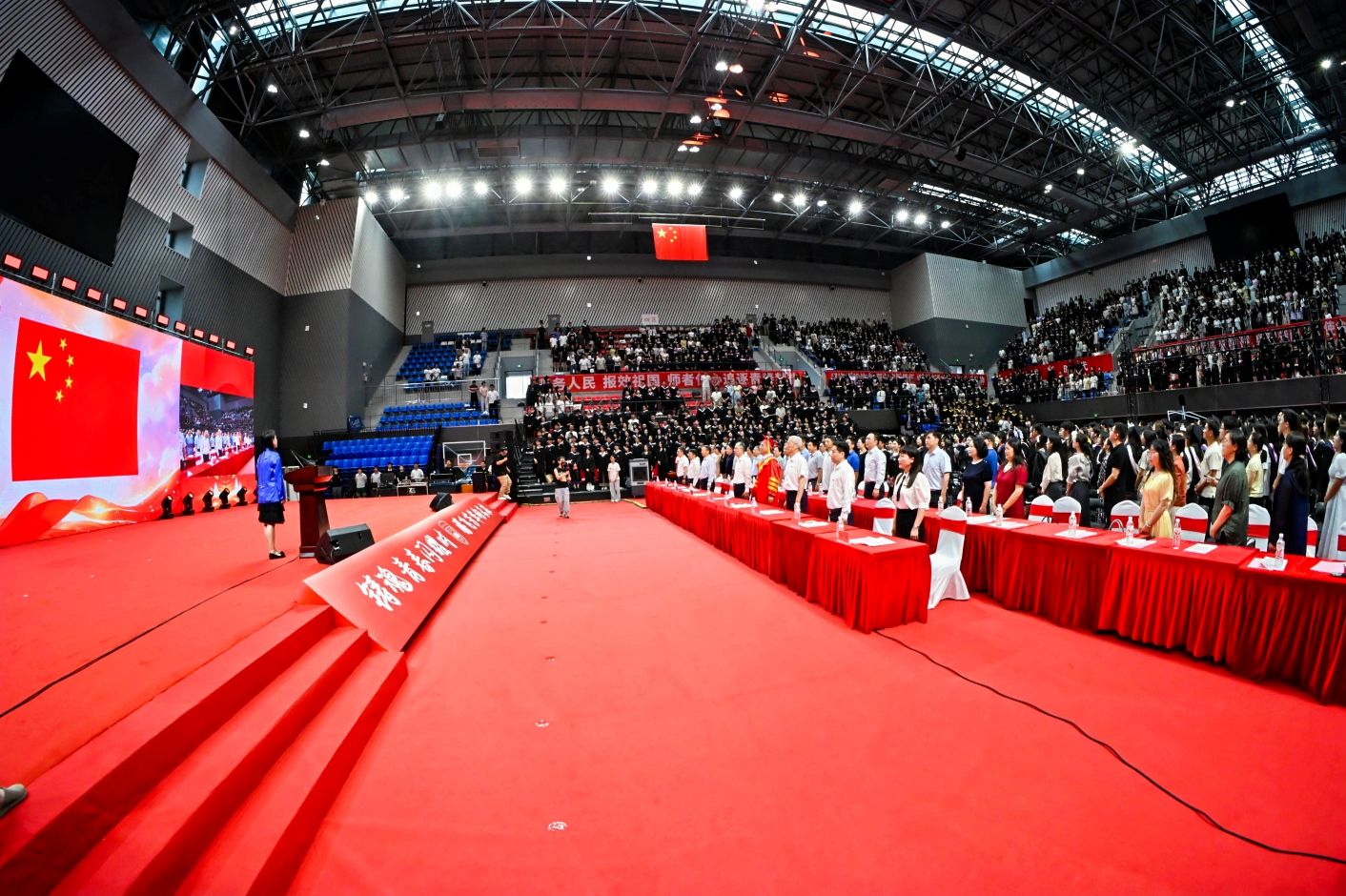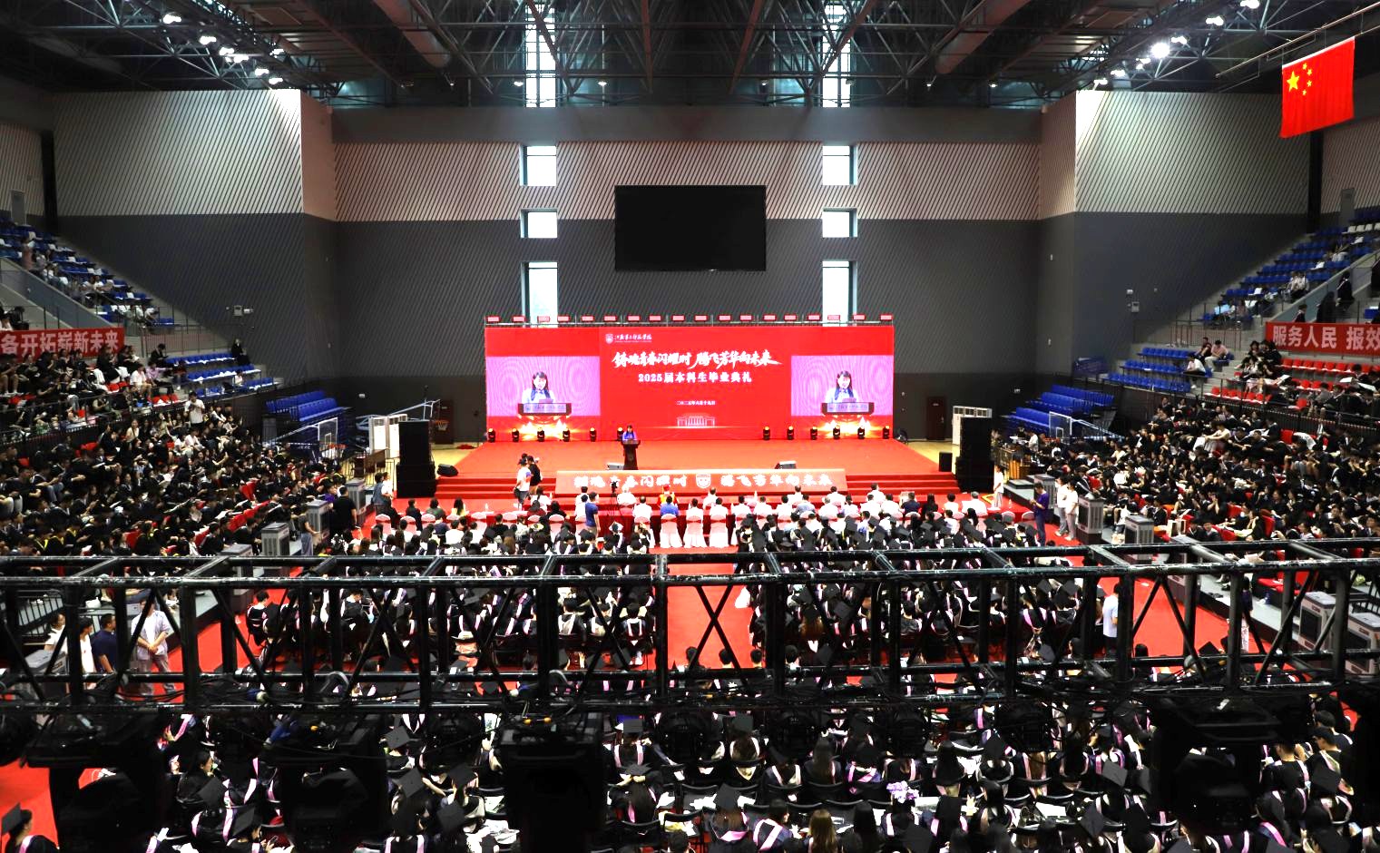 典礼在充满温馨回忆与真挚祝福的暖场视频和动感十足的青春歌曲串烧中拉开序幕,整个校园回响着属于毕业季的旋律。