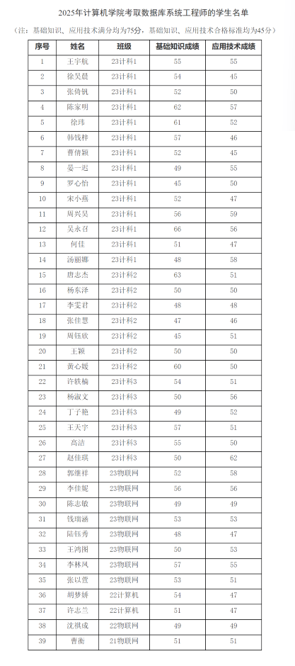 2025年上半年全国计算机软件资格水平考试(简称软考)成绩近日揭晓,计算机学院39名学生考取数据库系统工程师(中级职称)。