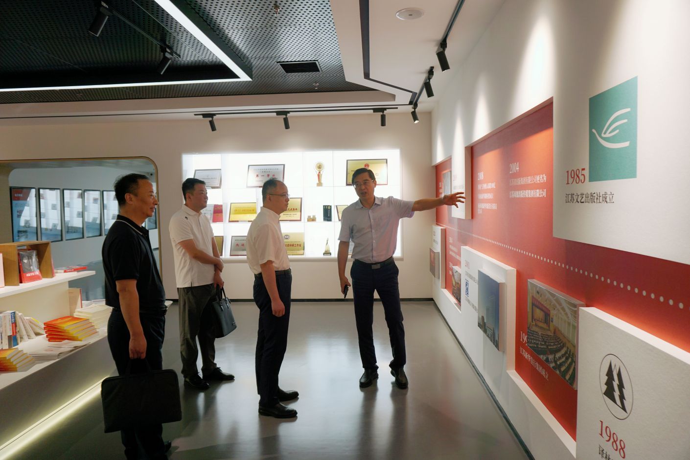 调研期间,章朝阳详细介绍了凤凰出版传媒集团的历史沿革、发展现状以及服务江苏基础教育高质量发展的成果与举措。调研组一行参观了凤凰传媒精品出版展厅,观看了企业宣传片,深入了解集团的文化底蕴与核心业务。