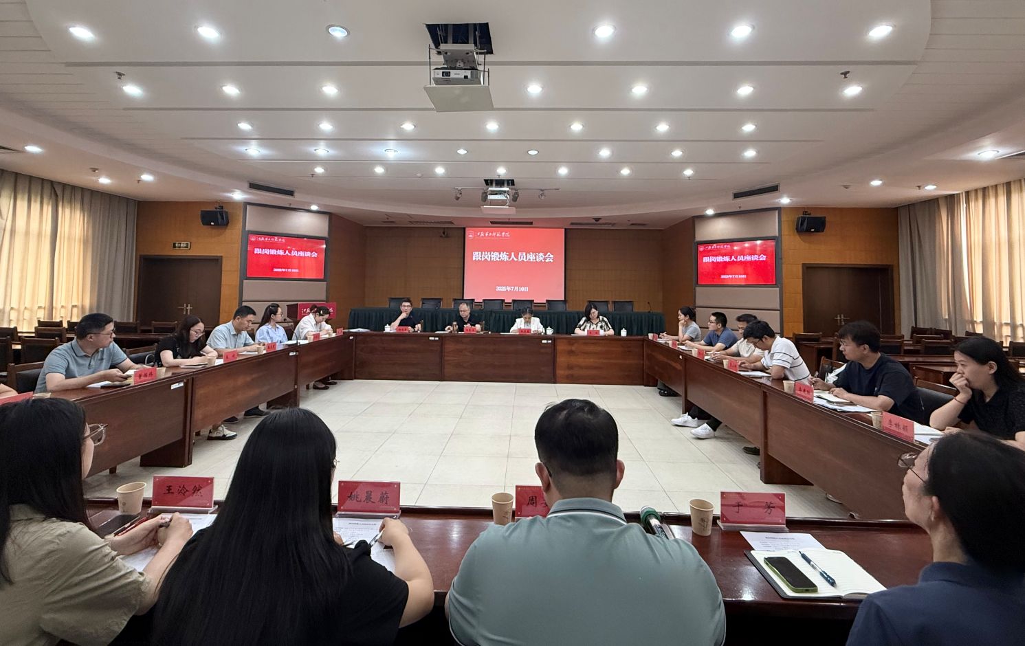 7月10日,我校在草场门校区召开跟岗锻炼人员座谈会,2025年校内跟岗锻炼人员和2024年校内跟岗锻炼期满人员参加会议,校党委书记王鲁沛,党委常委、副校长赵玉蓉出席会议。会议由党委常委、组织部部长杨思贤主持。