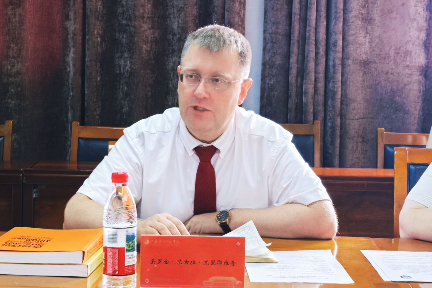 俄罗斯太平洋国立大学副校长索罗金·尼古拉·尤里耶维奇高度评价中国高等教育发展成果,介绍了该校的优势专业,并表示,双方合作将为两校师生提供宝贵的跨文化学习与科研平台,尤其期待在艺术领域拓展交流空间、实现合作突破。