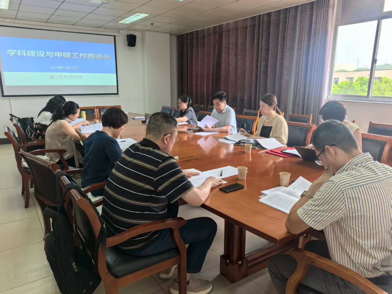 六维攻坚明路径,挂图作战抓落实。在专题会议上,梅景辉副校长对申硕工作提出了明确要求:一是强化组织领导,压实主体责任。要深刻认识申硕工作是关乎学校长远发展的核心战略任务,必须坚持党政同责、齐抓共管,实行学科带头人、学院院长以及方向带头人共同负责制,骨干教师全力配合,将申硕工作摆在事业发展全局的突出位置予以强力推进和优先保障。二是聚焦特色方向,优化队伍组合。要集中优势资源,深化学科内涵建设,精准聚焦特色研究方向;进一步凝练标志性成果,形成梯度分明的成果体系,避免“拼盘效应”;同时,大力优化人才队伍结构,坚持引育并举,着力打造高水平、有竞争力的学科团队。三是系统规划布局,讲好发展故事。 要将申硕工作作为引领学校整体发展的核心引擎,精心梳理学科发展脉络与建设成果,深度凝练独特优势与发展潜力。通过高质量、高水平的申报材料,讲好学科发展的战略蓝图、坚实基础与未来愿景。实施“挂图作战”,制定时间表与路线图,压实责任到岗到人,确保规划蓝图高效转化为申报成果。四是深化协同联动,破除体制机制壁垒。 要牢固树立“全校一盘棋”思想,强化部门、学院间的高效协同与无缝衔接。要打破学科、学院(部门)壁垒,以申硕和学科发展需求为导向,以成果质量和材料完备性为依据,优化资源配置组合。要善于置换资源,形成发展合力与最大公约数。鼓励各单位主动向前,勇于担当,形成联动作战的强大合力。五是对标对表找差,坚持动态优化。 要树立高标意识,精准对标申硕核心指标要求,深入查找差距与短板,及时查漏补缺;同时坚守底线思维,确保核心指标全面达标过硬;运用动态思维,密切关注政策导向变化与竞争院校态势,及时优化调整申报策略。六是深化三位一体,构建长效机制。以申硕工作为契机和抓手,强力推动学科专业人才一体化建设。围绕学科方向与专业需求精准引育高层次人才,优化师资结构。强化学科建设对专业发展的支撑作用,推动科研成果及时转化为优质教学资源,提升人才培养质量与特色。