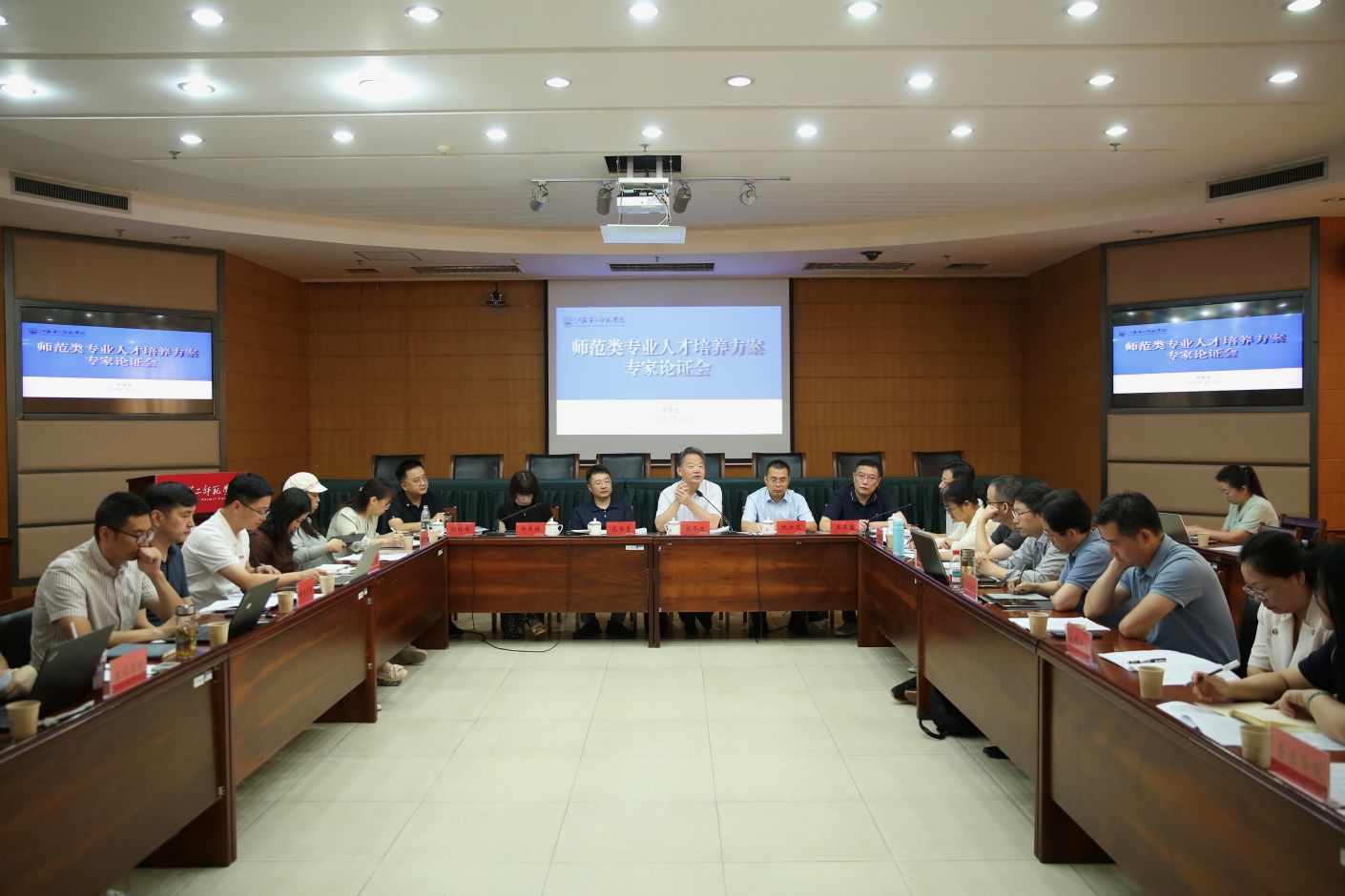 7月18日,我校在草场门校区召开师范类专业2025版人才培养方案专家论证会。校党委常委、副校长花书贵出席并主持会议,教育部师范类专业认证专家委员会委员、合肥师范学院宋冬生教授,教育部师范类专业认证专家委员会委员、东北师范大学郑燕林教授担任论证专家。相关学院(部)院(部)长、分管教学副院(部)长、专业负责人及教务处、教学质量监测与评估处、教师教学发展中心相关人员参加会议。