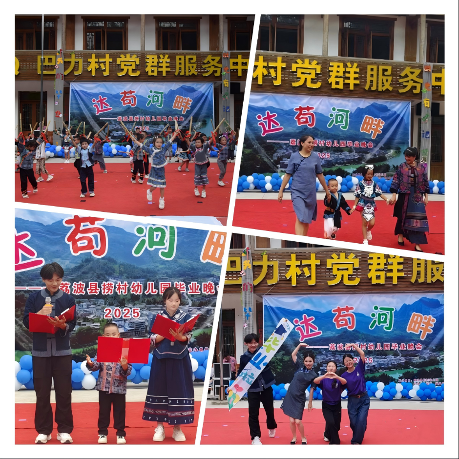 7月8日傍晚,巴力村广场灯火初上,捞村幼儿园首届毕业晚会启幕。“共产党像太阳…照得大地多辉煌…”孩子们用带着乡音的童声唱出对党的赤诚,稚嫩却坚定的歌声在山谷间回荡。这是来自大山深处最动人的礼赞,是民族文化沃土上绽放的希望之花。