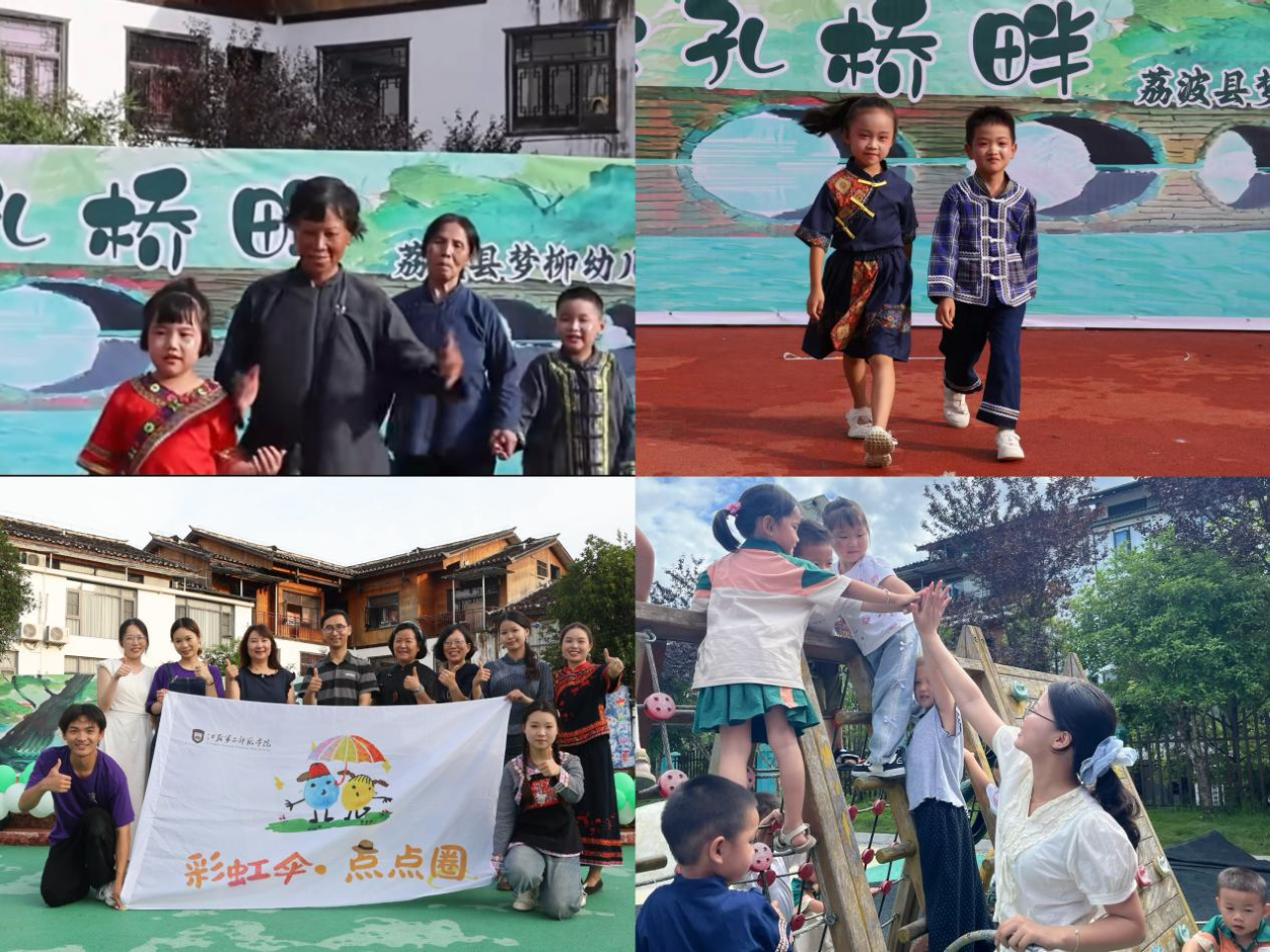 到西部去,到乡村去,到幼教最底端的村办幼儿园去,江苏第二师范学院学前学院彩虹伞志愿服务团队响应国家东西部教育协作号召,于今年暑期奔赴贵州省荔波县瑶山乡的捞村与梦柳两所村办幼儿园开展“幼童美育•乡园共生”社会实践活动,团队师生10人入驻乡村幼儿园,开展深度调研活动,进班顶岗,田野调研,策划组织并主持了两场毕业晚会,用青春脚步丈量乡土,用童心视角点亮山河。