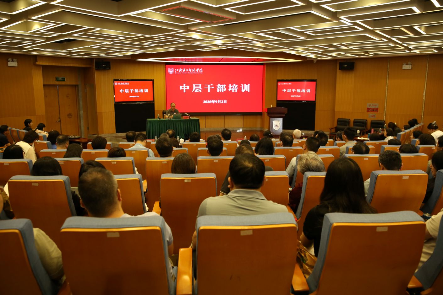 为深入学习贯彻习近平新时代中国特色社会主义思想和党的二十大、二十届三中全会精神,推动中央八项规定精神学习教育走深走实,进一步提升学校干部队伍的政治素质和履职能力,加强对教育强国建设背景下高等教育发展形势和要求的把握,9月1日至2日,我校在草场门校区开展2025年度中层干部培训。全体在宁校领导、中层干部,部分年轻干部及青年教师代表参加培训。