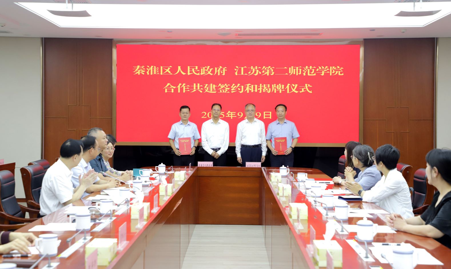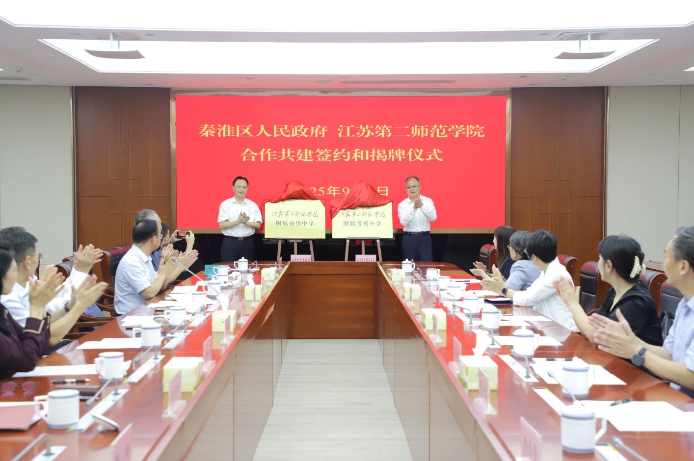 9月9日,在第41个教师节到来之际,我校与南京市秦淮区合作共建签约暨附属学校揭牌仪式在秦淮区人民政府举行。秦淮区委书记、南部新城管委会党组书记、主任王生,秦淮区委副书记、区长凌向前,校党委书记王鲁沛出席仪式。仪式由凌向前主持。