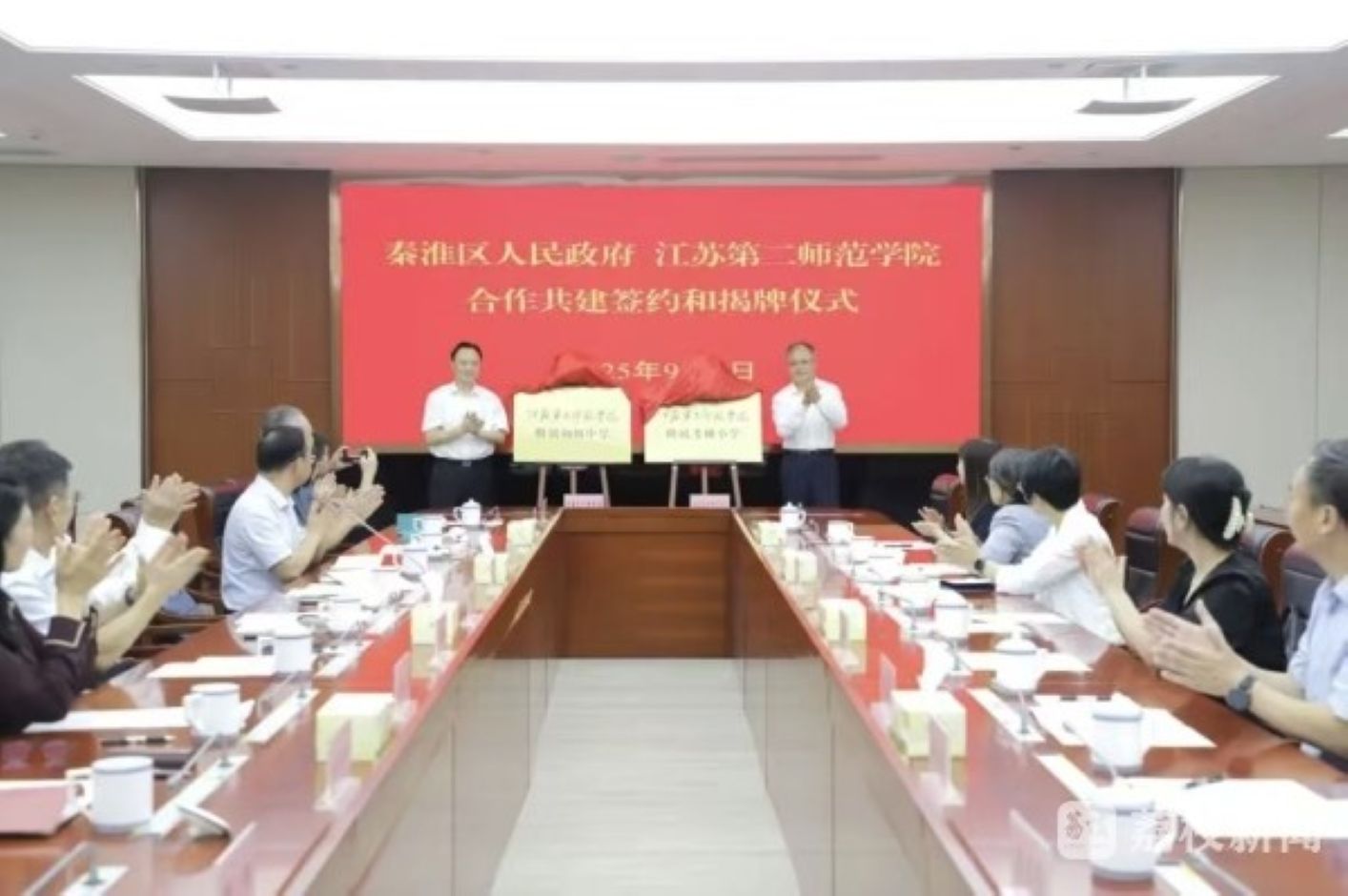 9月9日,在第41个教师节到来之际,江苏第二师范学院与南京市秦淮区合作共建签约暨附属学校揭牌仪式在秦淮区人民政府举行。此次校地合作,既是推动秦淮教育高水平均衡发展的重要举措,也是促进校地资源共享、优势互补的关键一步。