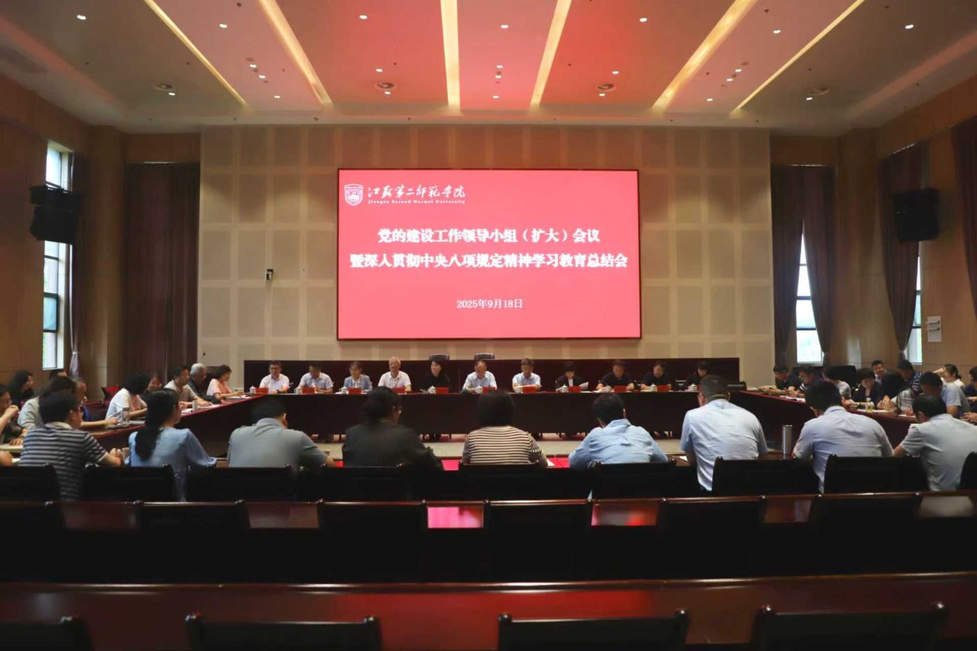 学校领导班子成员、党的建设工作领导小组成员、党委委员、纪委委员、二级党组织书记、深入贯彻中央八项规定精神学习教育工作专班成员等参加了会议。