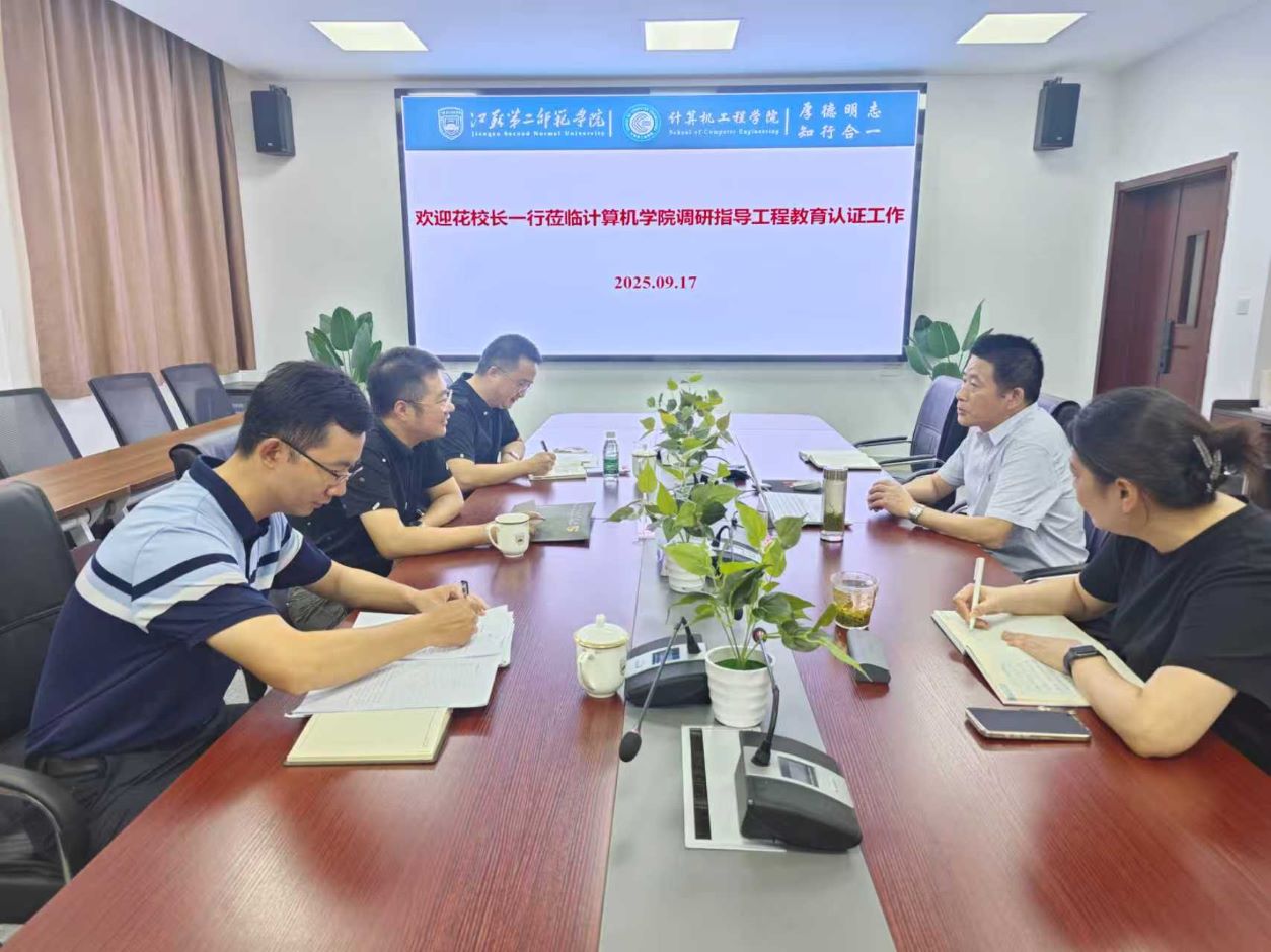 9月17日,副校长花书贵一行赴计算机工程学院,就工程教育认证工作的开展情况进行专题调研。会议在明理楼2-309会议室召开,由计算机工程学院院长朱辉生主持。教学质量监控与评估处负责人、计算机工程学院领导班子成员及计算机教研室负责人共同参加了会议。