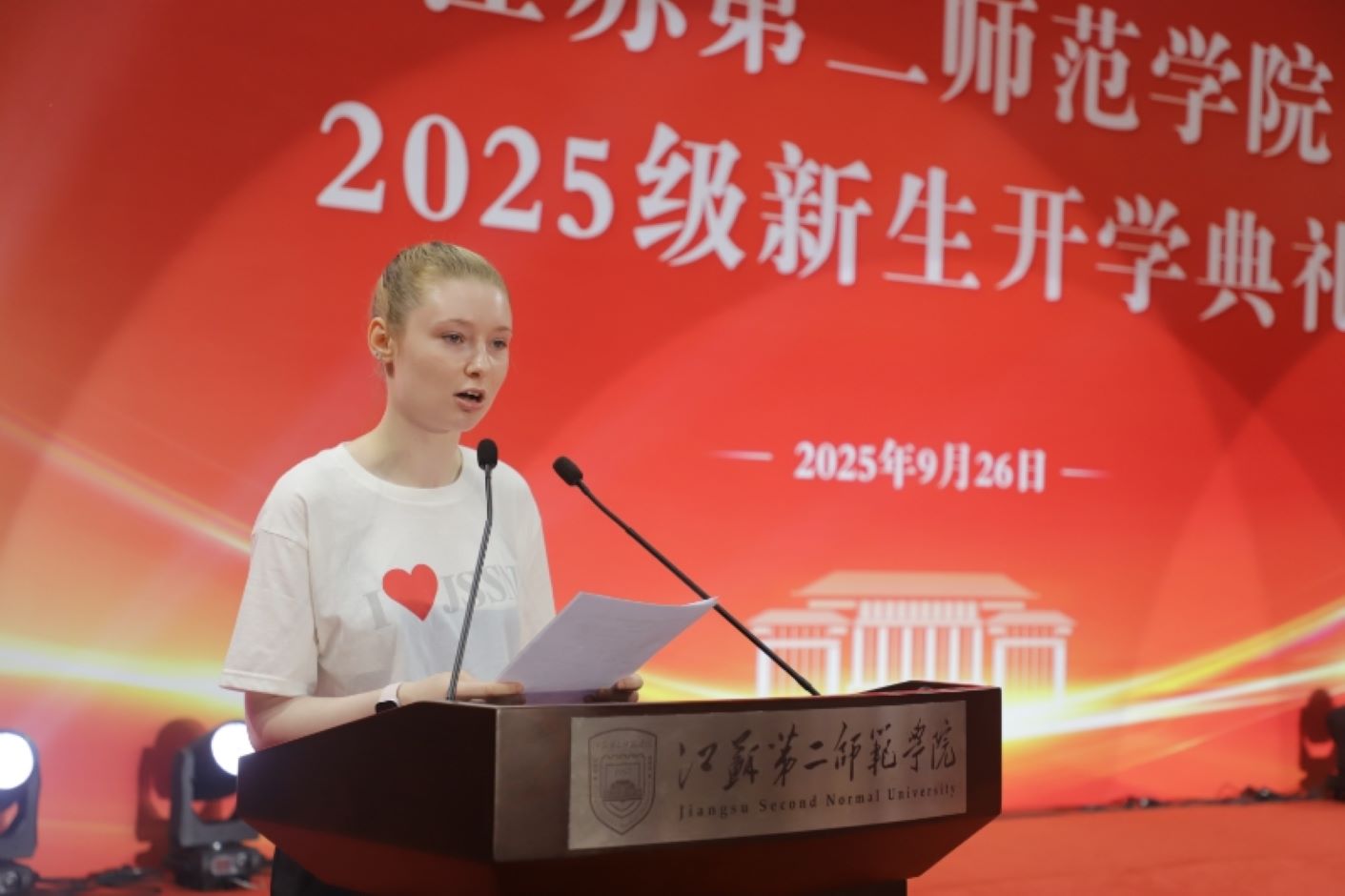 来自俄罗斯的留学生萨沙(Pogorelova Alexandra),用一句汉语的“大家好”拉近距离。她分享了自己与江苏二师结缘的奇妙旅程。“在这里,我就像在家一样。”她真诚的表白正是学校国际化办学氛围与人文关怀的最佳注脚。