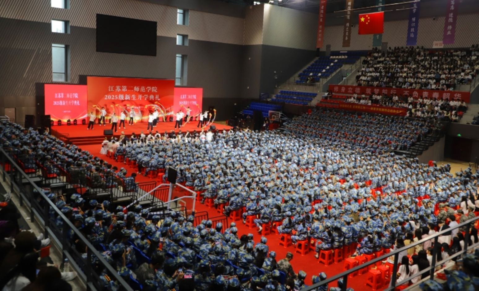 9月26日上午,江苏第二师范学院2025级新生开学典礼在石湫校区体育馆内举行,气氛庄重而热烈。三千余名本科生、研究生、留学生新生带着憧憬与梦想汇聚于此,他们的大学故事,在这一刻正式开启。校党委书记王鲁沛,校长徐国华,副书记、副校长刘继红,纪委书记崔燕,党委常委副校长姚振标、赵玉蓉、花书贵,职能部门负责人、学院(学部、书院)负责人等出席典礼,典礼由校党委副书记、副校长刘继红主持。