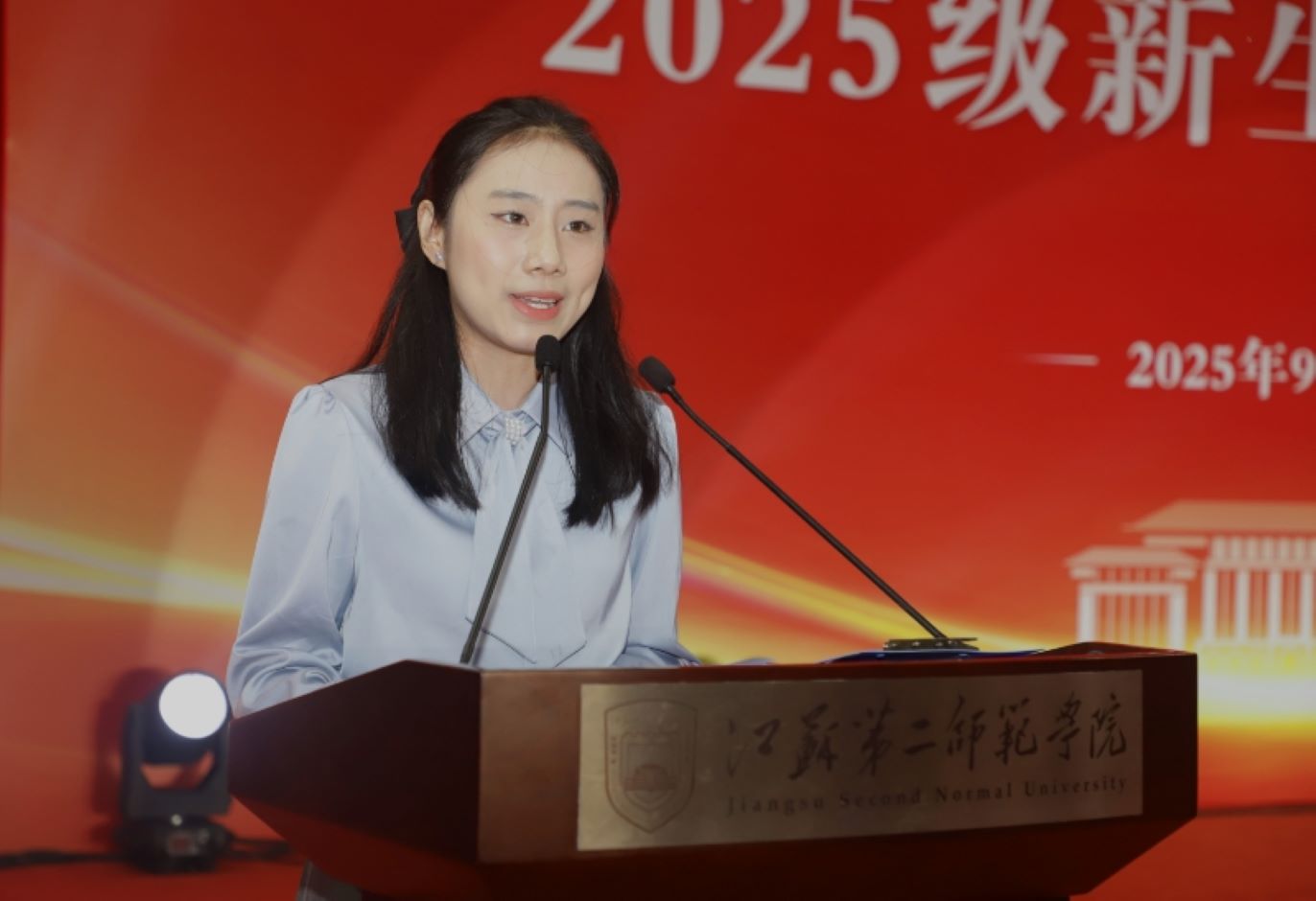 教师代表、地理科学学院张蕾教授在发言中为新生解释了大学学习的深层意义。她指出,“实”是根基,是每位同学必须掌握的专业知识和硬核技能;而“虚”则代表视野、情怀与价值追求,是让知识产生温度、让技术拥有人文方向的关键。在人工智能迅速发展的今天,她鼓励同学们既要踏实积累、掌握新工具,也要始终保持对人的关怀、对价值的判断,成为兼具专业能力与精神高度的新时代青年。