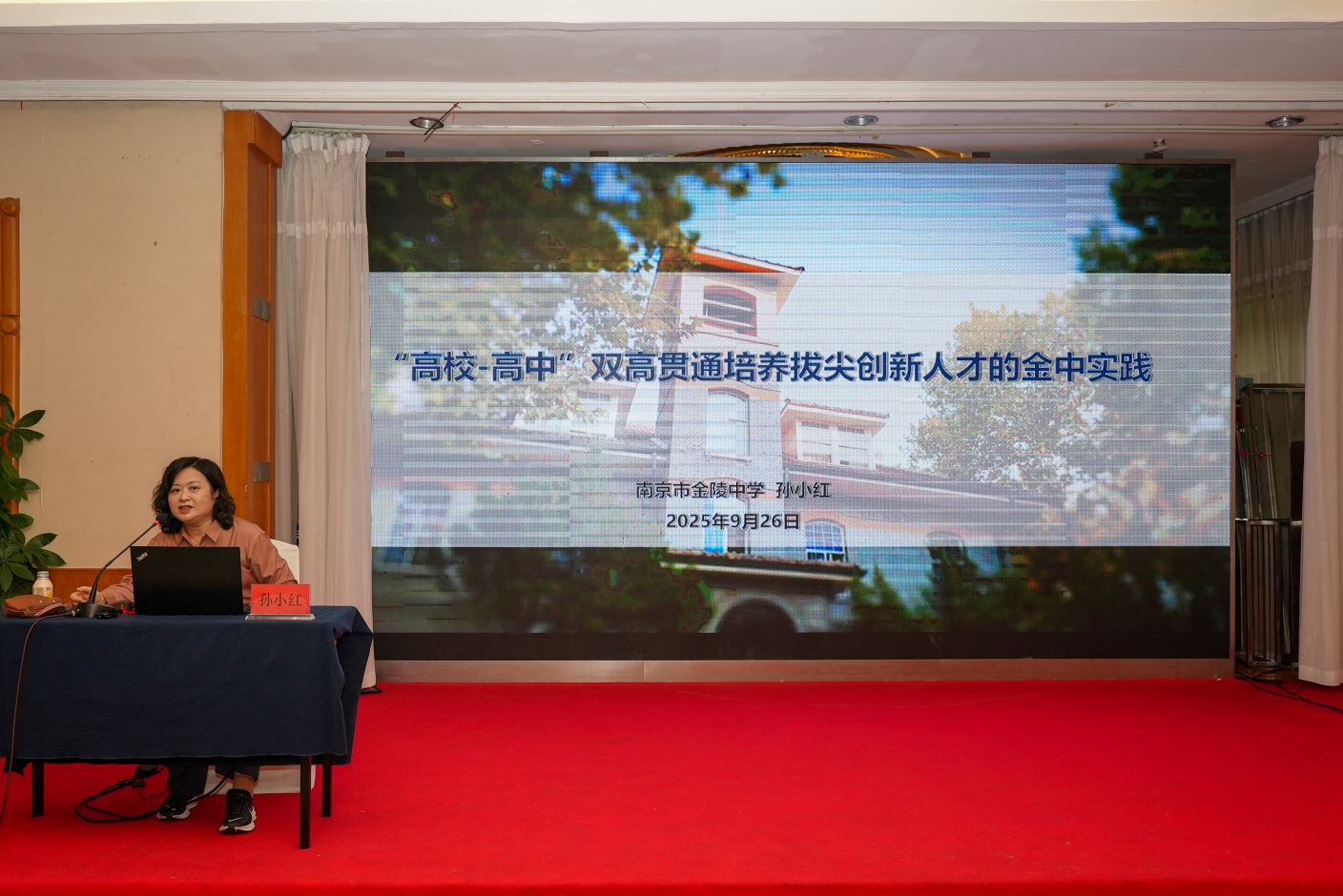 南京市金陵中学孙小红书记以《一边上高中,一边上大学 ——“双高”贯通培养拔尖创新人才的金中实践》为题,分享了学校在高中与大学衔接培养方面的创新探索。孙书记指出,“双高贯通”不是简单的课程叠加,而是机制、资源、人才培养模式的深度重构。金陵中学通过“准博士生培养站”“卓越未来工程师”“生涯规划课程”等举措,为学生开辟了个性化成长的通道,为与会者提供了极具借鉴价值的实践范本。