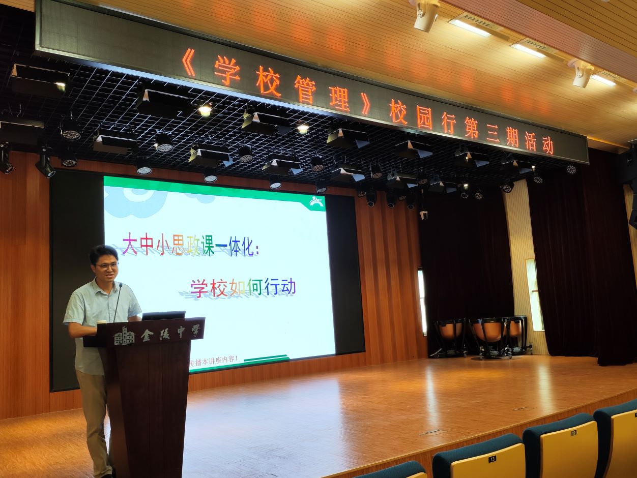 当日下午金陵中学分会场活动的序幕,由南京市教育科学研究所研究员李宏亮带来专家报告《大中小思政课一体化:学校如何行动》拉开。李主任从理论建构与实践操作两个层面,深刻阐释了思政教育一体化建设的内涵与核心要义,并聚焦“学校行动”这一关键,系统梳理了各学段在目标衔接、内容贯通、方法创新等方面面临的挑战与可行路径,引发了与会者的深度共鸣与思考。