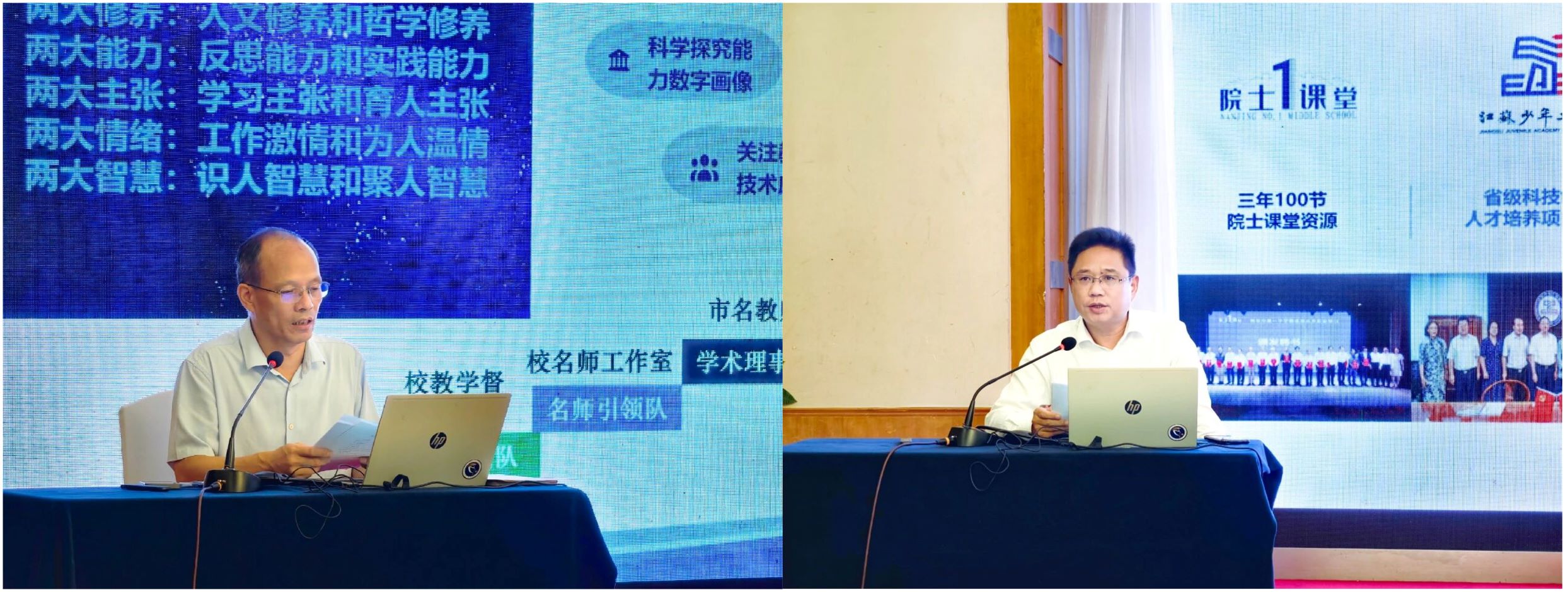在高中专场中,六位校长分别从不同维度分享科学教育与人才培养的校本实践。苏州工业园区星海实验高中党委书记周晓阳以《AI赋能科学高中发现式学习实践蓝图》为题,探讨人工智能如何重构科学教育场景;南京市第一中学副校长高磊提出“大科学教育”理念,通过“大科学课堂”涵育科学家精神;南师附中秦淮科技高中副校长龚亮亮则聚焦“大科技教育”,分享技术创新后备人才培养的实践经验。此外,南京天印高级中学校长张昌军、南师附中实验初级中学书记朱广军等,分别从生命教育、学业发展等角度,回应“双高衔接”与育人模式优化的现实命题。