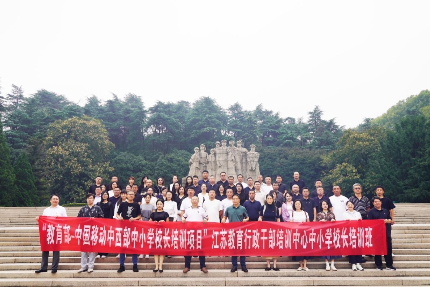 青山埋忠骨,信仰照征程。2025 年 10 月 11 日上午,师干训中心党支部全体党员与正在参训的国培班 54 名校长联合赴雨花台烈士陵园开展主题党日活动。此次活动以“党性锤炼 + 业务融合”为核心,将红色教育与国家安全教育深度结合,在革命圣地的沉浸式体验中筑牢信仰根基,为教育管理队伍建设注入红色动力。