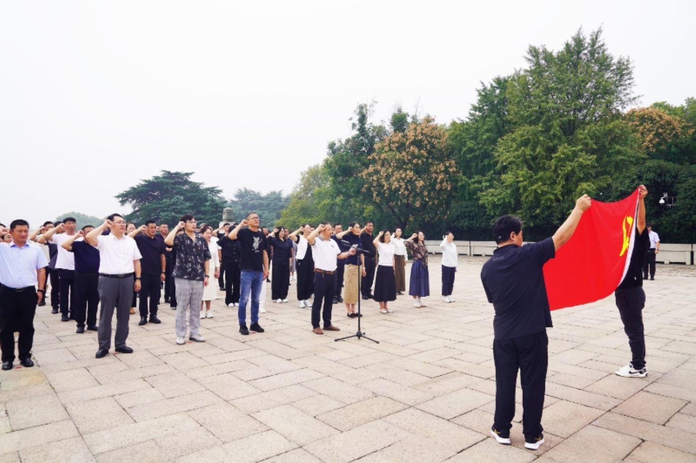 “我志愿加入中国共产党,拥护党的纲领,遵守党的章程……” 在邵红军书记的领誓下,全体党员举起右拳,面对鲜红党旗重温入党誓词。铿锵有力的誓言穿越时空,既是对革命先烈的庄严承诺,更是对初心使命的坚定践行。仪式最后,大家伴随《国际歌》演奏版旋律,缓缓绕行纪念碑一周,依次瞻仰致敬,将英烈精神深深镌刻于心。