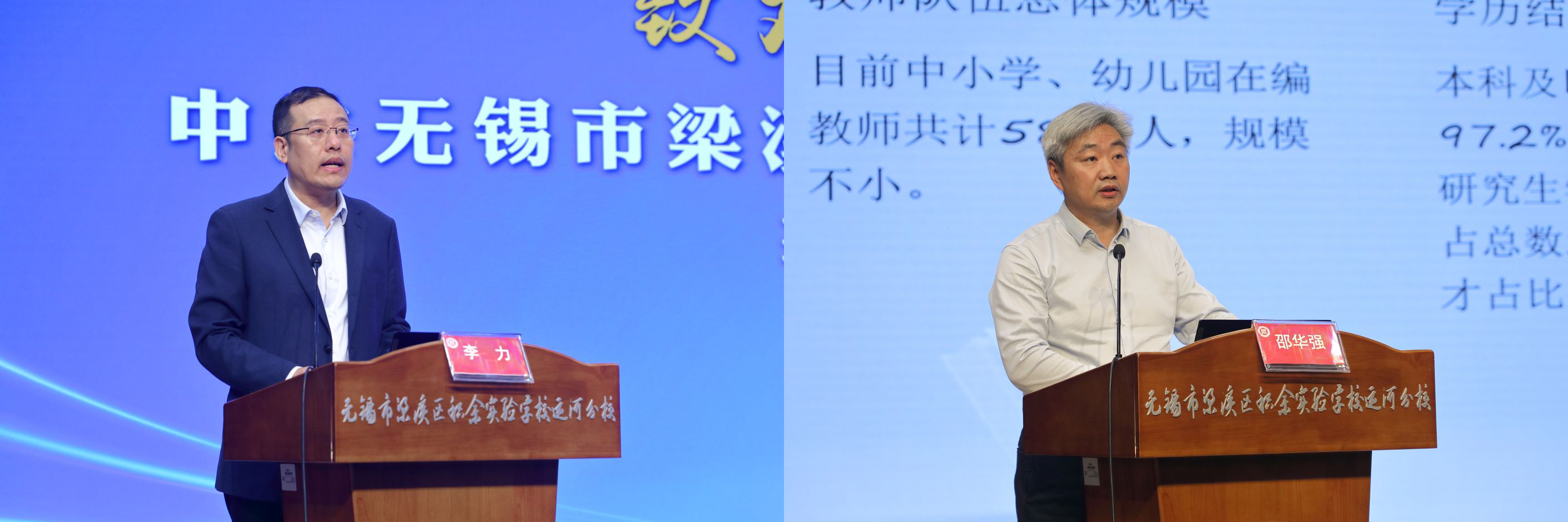 中共无锡市梁溪区委教育工委书记李力在致辞中系统介绍了梁溪区将教育家精神融入教师队伍建设的顶层设计与实践逻辑。梁溪区教育局副局长邵华强作《精神·实践·智慧:三维融合视角下的区域教师发展体系构建实践》专题分享,从区域层面系统阐释了如何以教育家精神为引领,构建融合价值导向、实践路径与智慧创生的教师发展新生态。