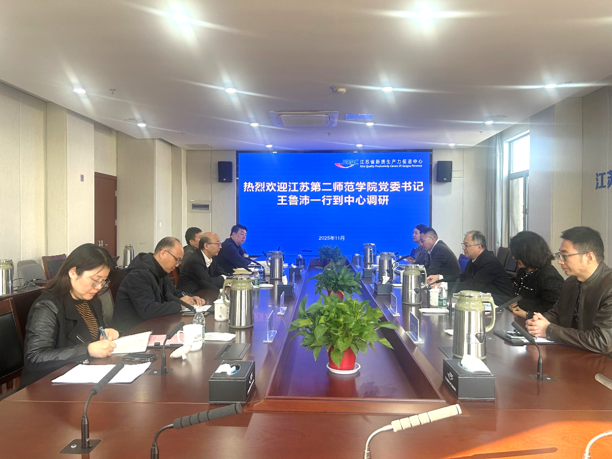 11月11日,校党委书记王鲁沛一行赴江苏省新质生产力促进中心调研,与省新质生产力促进中心主任、党委书记赵志强及相关处室负责人举行座谈。