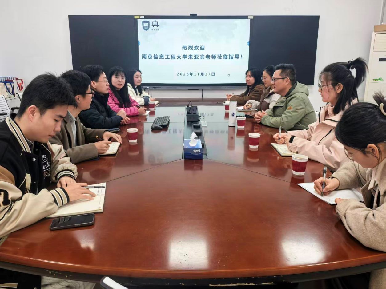 卢涛对朱亚宾老师的到来表示热烈欢迎,并简要介绍了求真书院的办学理念、育人特色及辅导员队伍建设现状。他强调,学院与书院通过课程共建、导师联动、资源共享等机制,已构建起多层次协同育人体系,并期待以此次交流为契机,进一步深化院际辅导员队伍的常态化互动与合作,促进资源共享与优势互补。