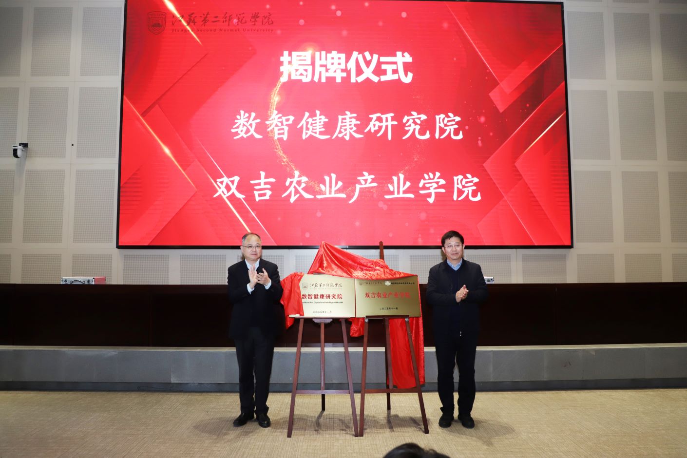 王鲁沛和徒位国共同为数智健康研究院与双吉农业产业学院揭牌。