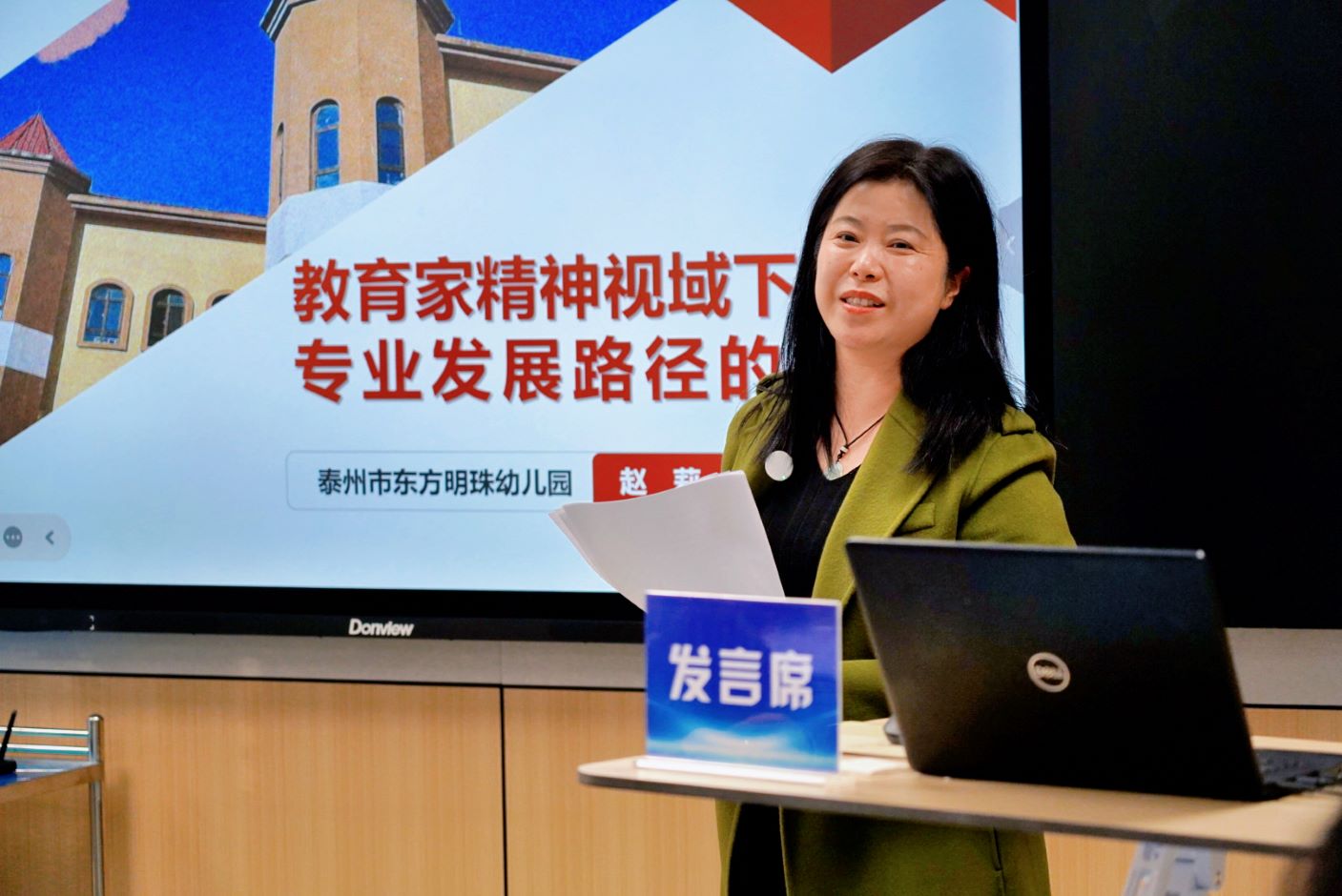 四位来自不同地区和学段的校园长,从多元视角分享了践行教育家精神的基层智慧。淮安市韩桥中心小学展现了一所乡村小学探索红色文化扎根乡土、浸润童心的有效路径。溧水和凤中心小学聚焦学校文化生态的构建,阐述了如何通过“和合”理念凝聚师生、家校共识。睢宁县新城区实验小学校长王冬梅系统性地阐释了“大思政”格局与“五育融合”实践的有机结合,呈现了全员、全过程、全方位育人的整体行动方案。泰州市东方明珠幼儿园园长赵莉则将宏大的教育家精神与微观的教师成长相链接,分享了以精神引领驱动教师专业自觉与团队发展的创新机制。