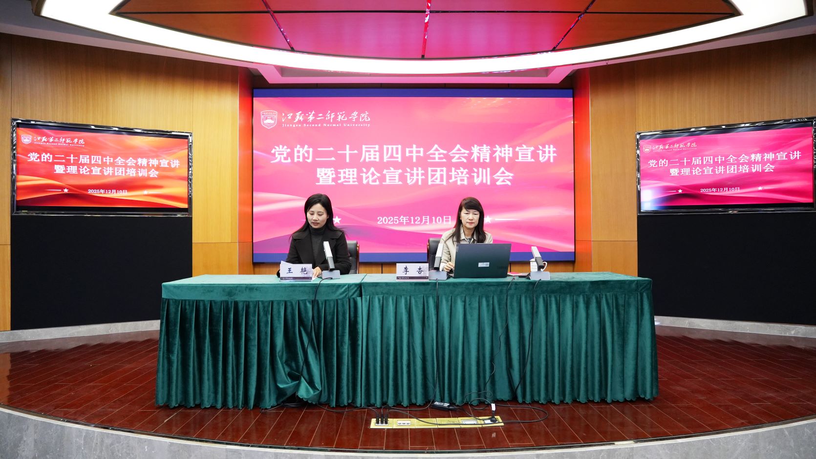 为全面学习领会党的二十届四中全会精神,12月10日下午,我校在草场门校区现代教育技术楼报告厅召开学习贯彻党的二十届四中全会精神宣讲培训会。《南京大学学报》主编、博士生导师王浩斌教授,南京财经大学科学研究院副院长、博士生导师李杏教授应邀作辅导报告,校理论宣讲团成员、青年教师和优秀学生代表参加培训。培训会由党委宣传部副部长王艳主持。