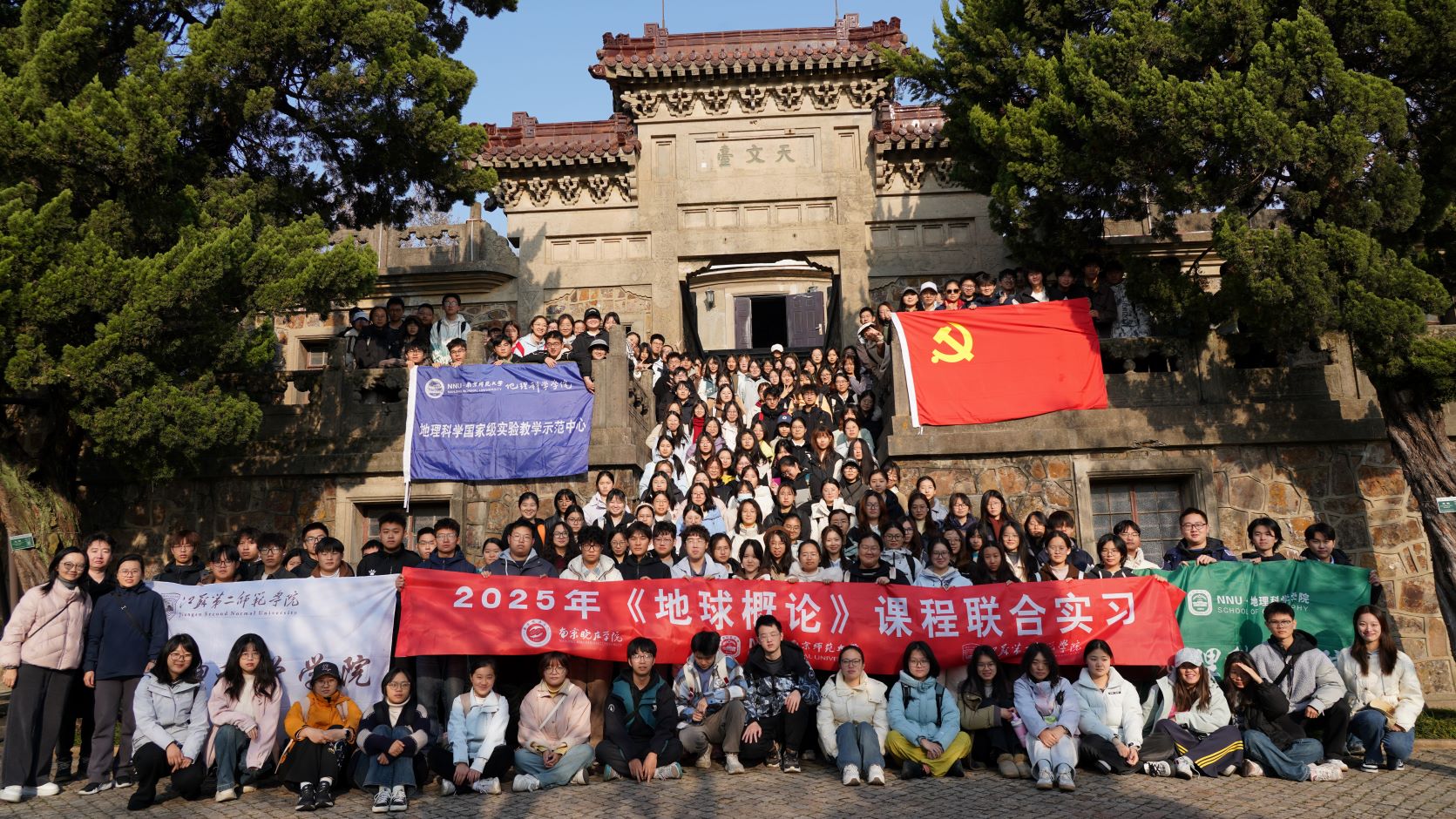 2025年12月10日,我校与南京师范大学、南京晓庄学院的百余名师生齐聚紫金山天文台共同开展《地球概论》课程,首次举行跨校联合实习活动。此次活动将课堂延伸至山川天地,让理论知识对接浩瀚星空,是一次生动的实践教学,也标志着三校在地理与天文实践教学协同创新上迈出了坚实的一步。